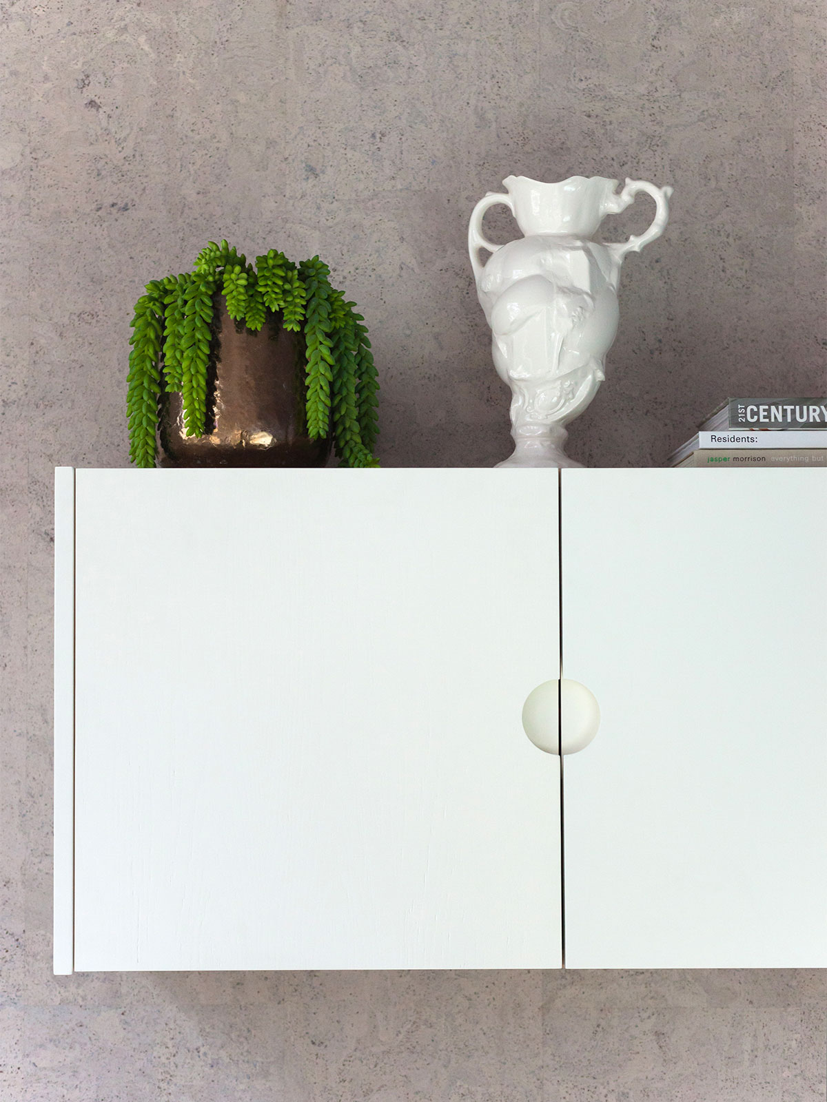 The one ornament in the space is a considered nod to our decorative streak, a vase from the incredible Elunid Glyn Ceramics. She takes vintage ceramic pieces found in charity shops and reimagines them as new forms. So beautiful in clean white ceramic.