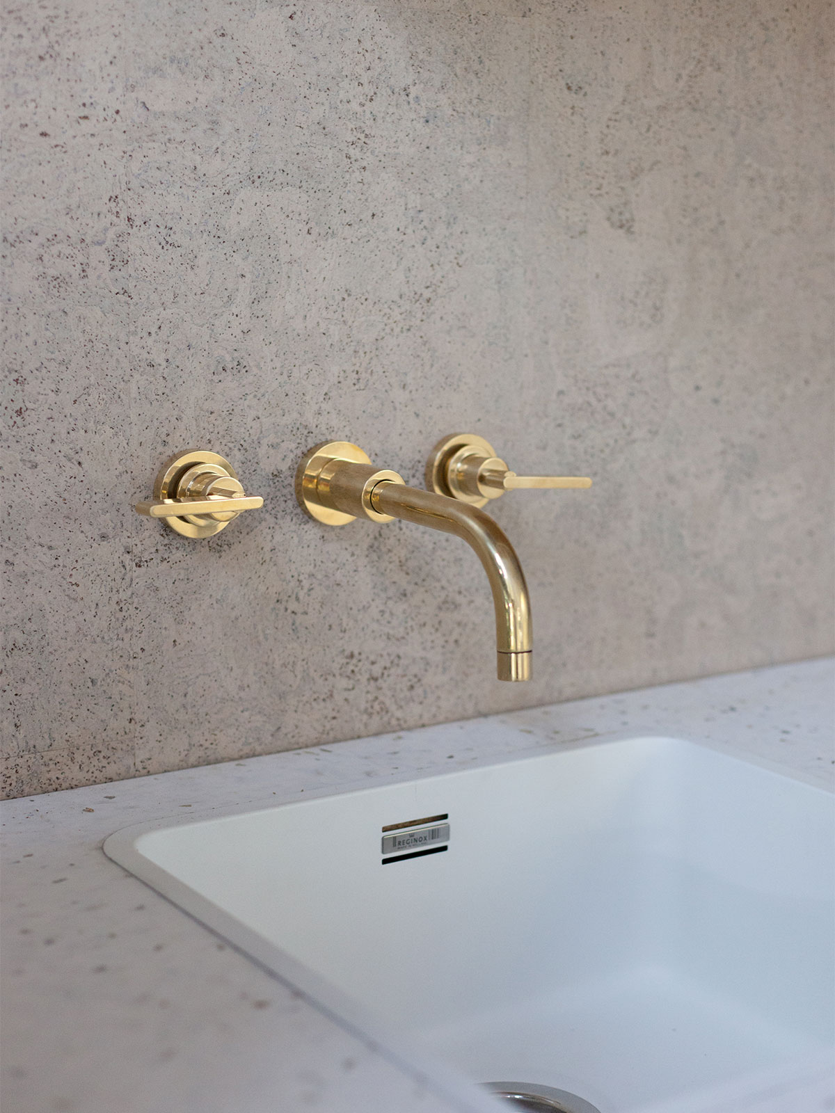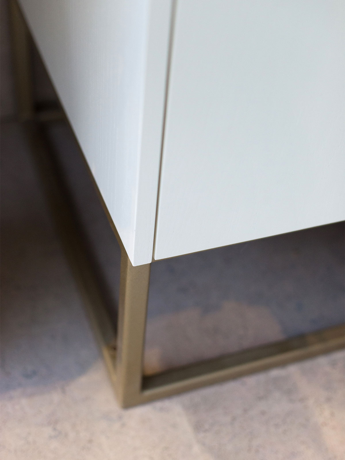 Gold leg detail of bespoke Naked Kitchen, designed by 2LG Studio