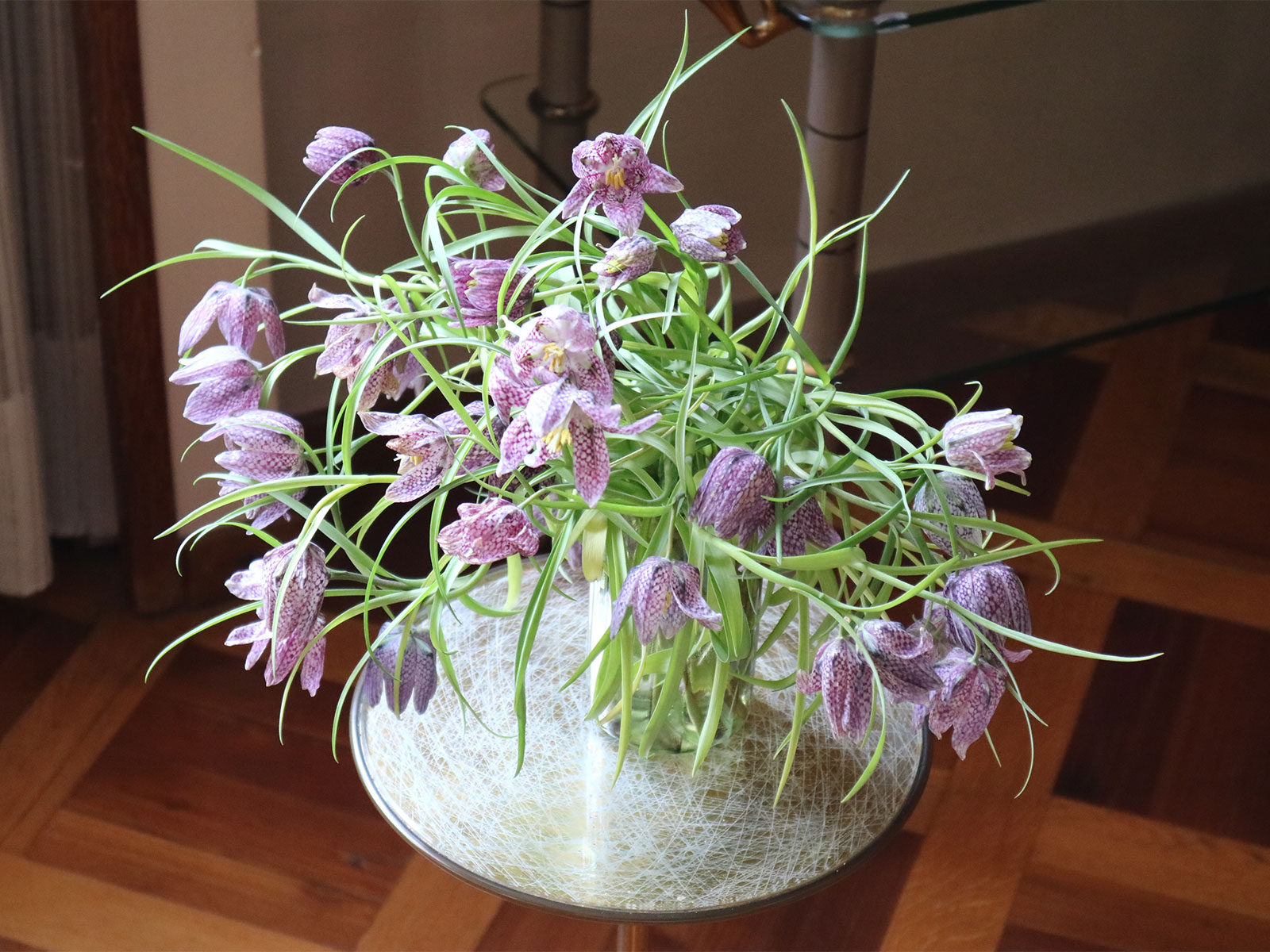 Snakes Head Fritillary in a vase at Villa Borsani (photo by 2LG)