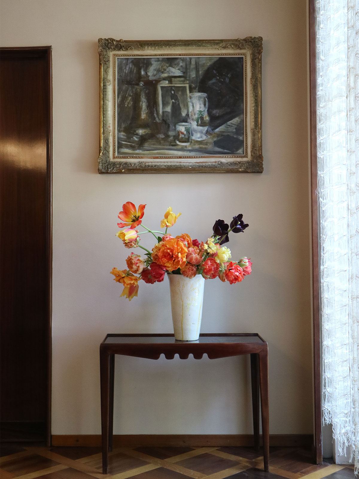Flowers in the dining room at Villa Borsani (photo by 2LG Studio)
