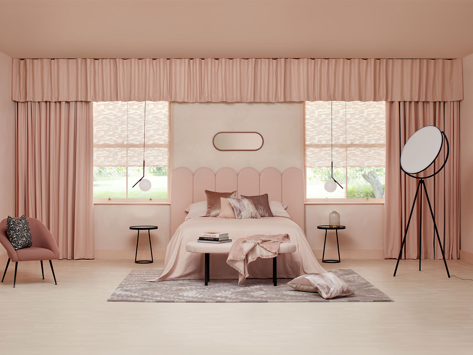 Pink has been part of our design passion since the beginning (over 5 years ago when we painted our sitting room Pink) and so it was a definite start point for us when faced with creating a dream bedroom. We are also big fans of an epic window treatment (you know we love our wall to wall curtains in our interior design projects) so the chance to go to town on them here was also so exciting.