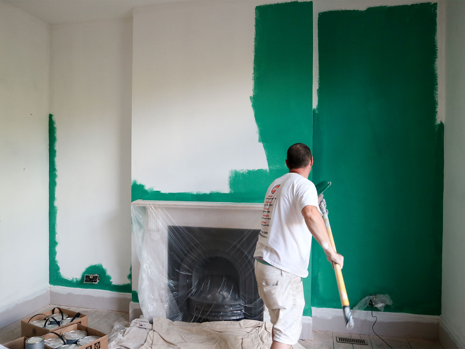 Yes that is a bit of colour going on our newly plastered walls. You know we love our colour and here we wanted to carry the garden into the space with a bit of green.