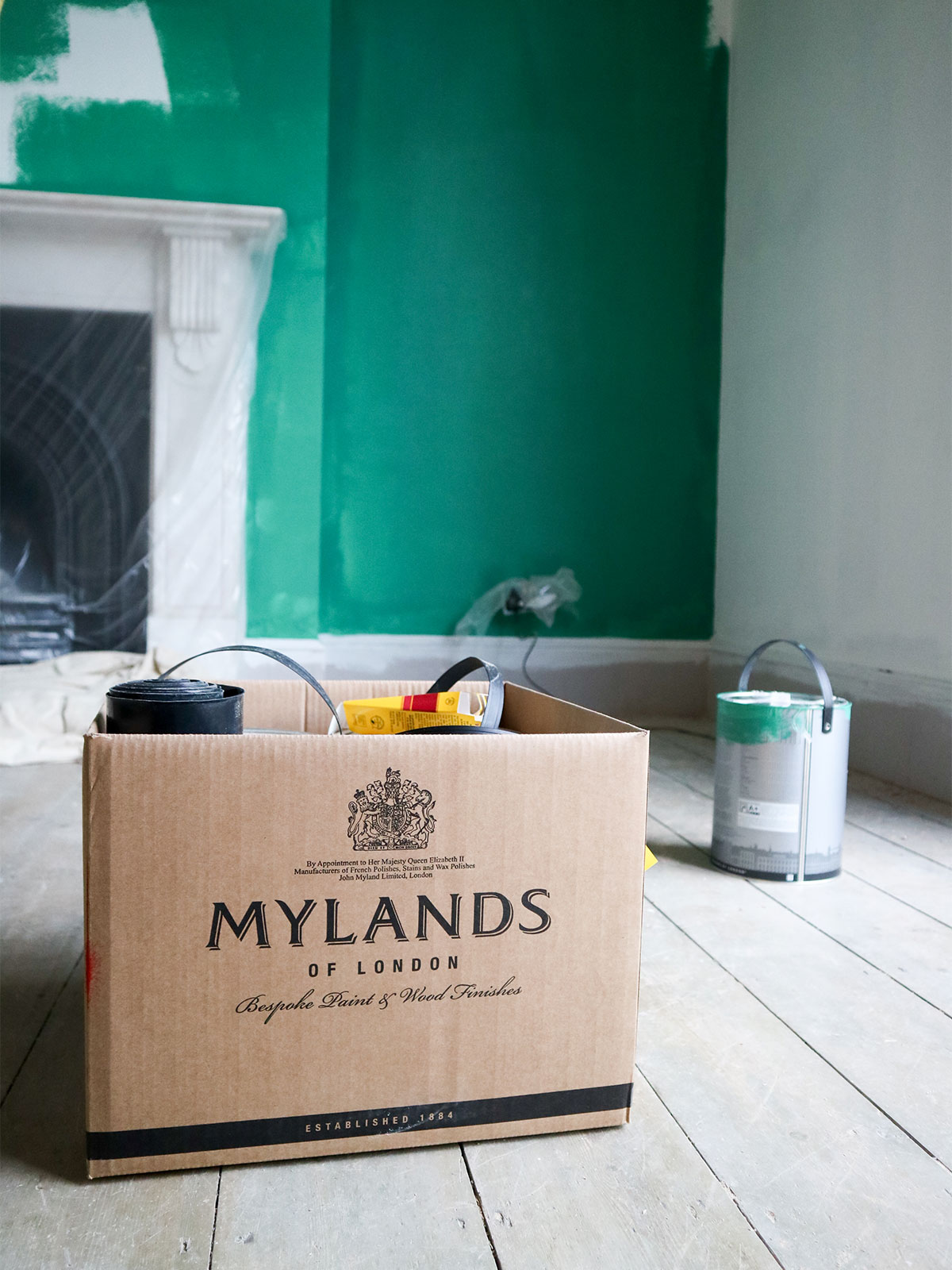 This delicious green is from Mylands, and we will give you more info on that soon, they say, teasing you with a half painted wall. But that is the joy of this process, it moves so fast once you get into it (if you have prepped properly), and you have to take in each moment as it goes.