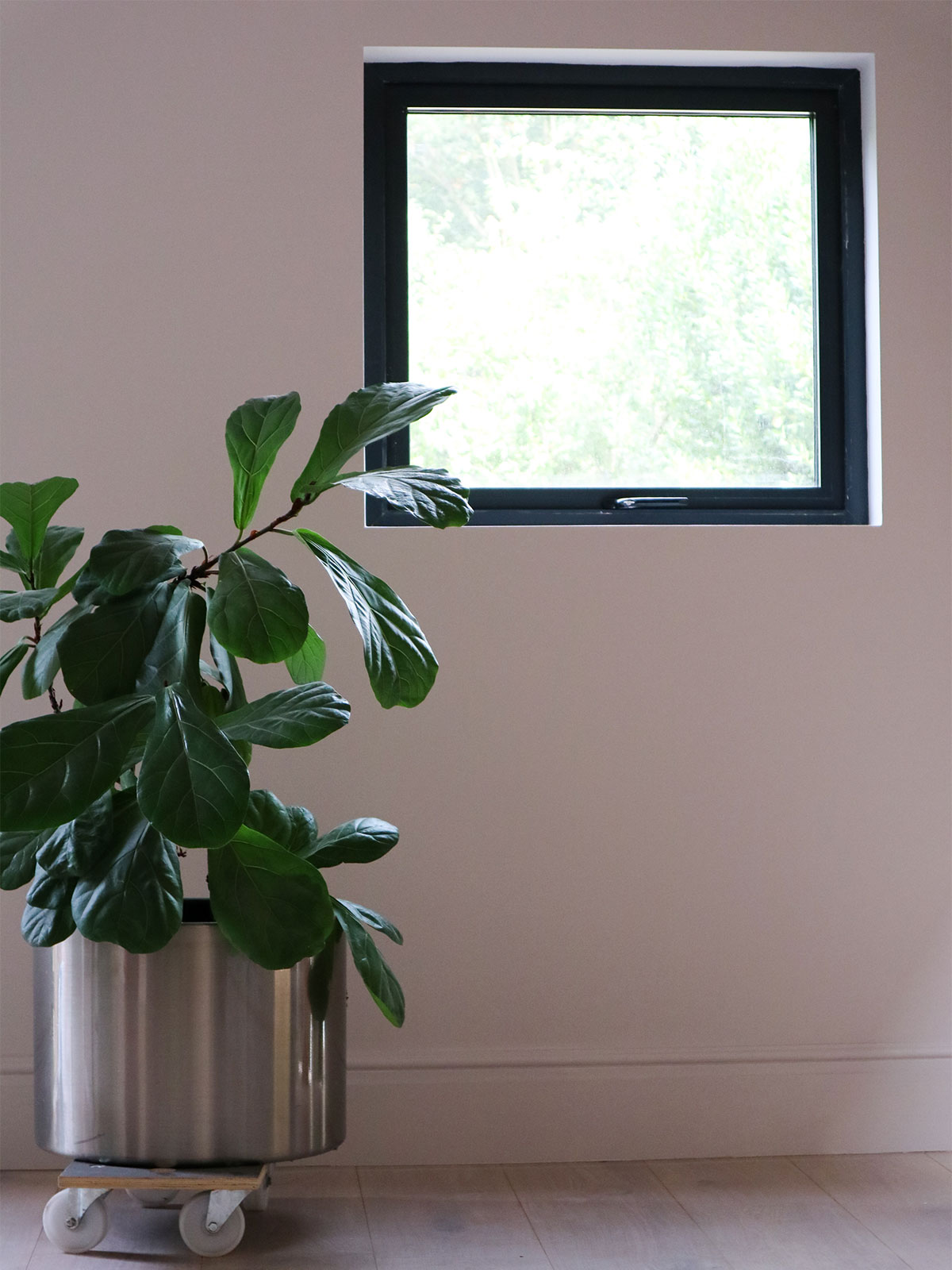 We also kept the ghost of the original coving (and made a virtue of the steel beams that drop below the ceiling) by painting the ceiling in a gloss version of the other wall colour, Fitzrovia (the colour of our living room). This not only gives a light boost to the ceiling but it adds a cute modern detail. The handpainted line all around the room disguises the junction between the beams and the walls effortlessly. And you know we love to make something of a ceiling. This may be subtle but it has impact when you are in the space.