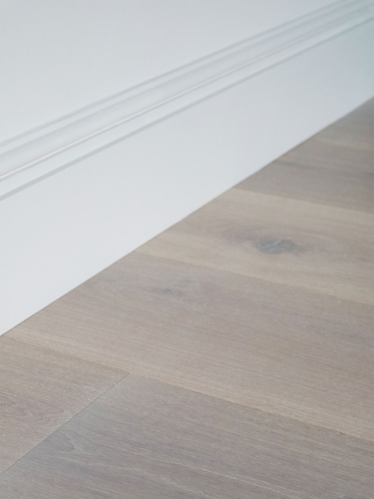 We have worked with Havwoods on this because they have so many beautiful options and the width of these boards is harder to come by. The floor is engineered oak (great for stability and durability) and the specific range is Venture Plank, Blanco in 260mm wide boards. Our floors make us very happy indeed and you can get the same type of floor here.