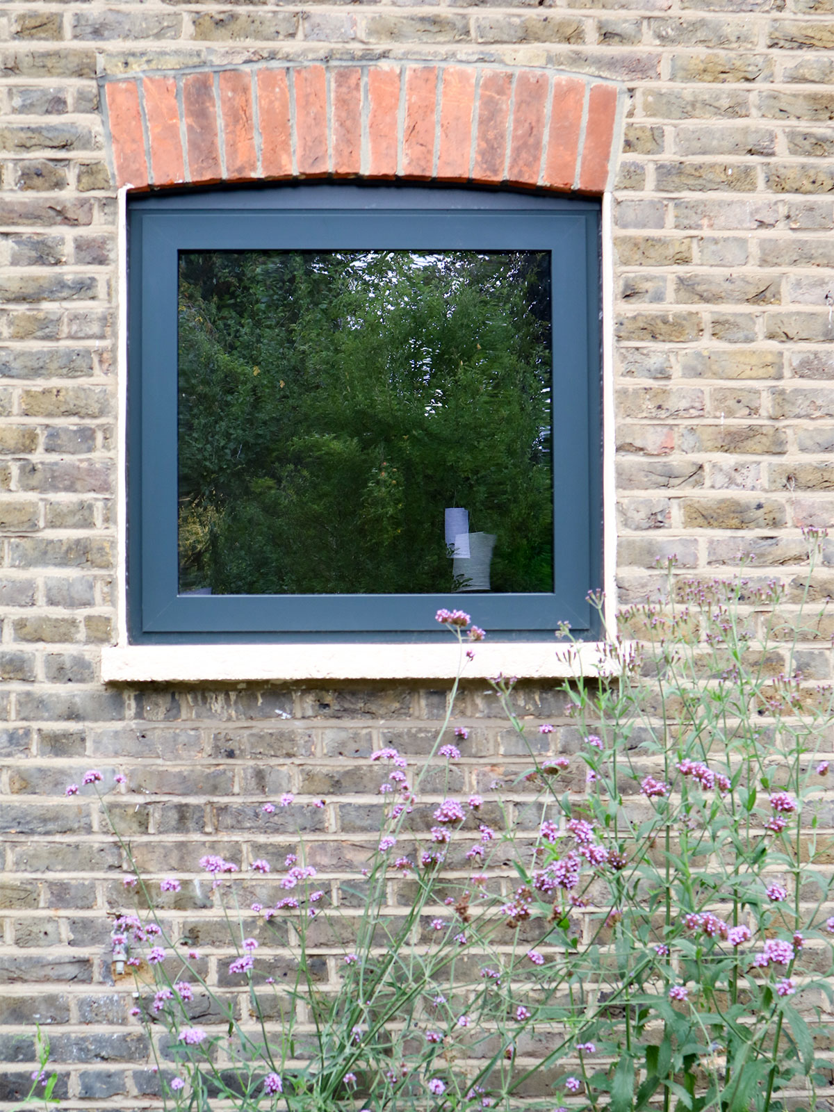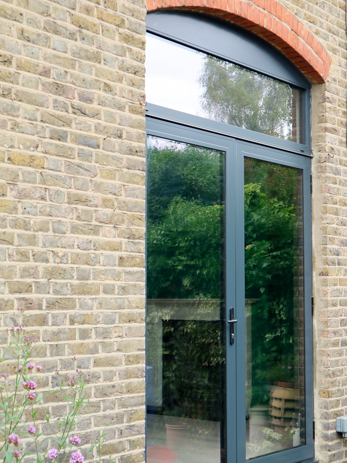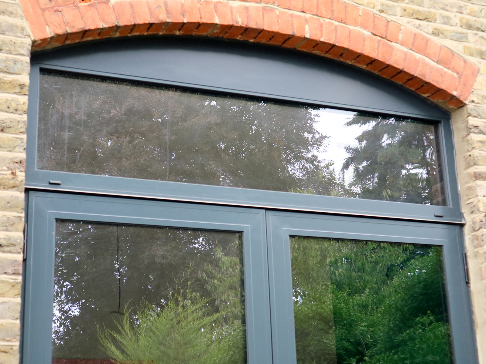 In Hindsight, we could have had a piece of glass at the top to match the arch of original brick. But this opportunity only arose once we removed the original coving inside because it dropped down inside below the line of the external arch.