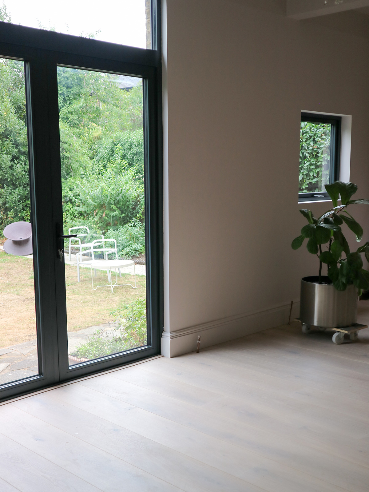 And don’t they look sexy! ODC also offer a colour service so these doors could have been powder coated in any colour. We immediately got very excited about this and started playing with various colour options. But ultimately, we wanted the bones here to remain classic. There is going to be plenty of fun to be had with colour inside (more on this to come) and so we felt that the modern classic that is Anthracite Grey, would nod to an industrial vibe whilst grounding some of the wilder elements of the interior we have designed. We couldn’t love them more. Such a strange thing to love doors, but when you have spent three years living with condensation and wind blowing in and ice on the glass of your old doors, there is a special pleasure in stepping through newly fitted doors. Ahhhhhhhhhh. (another little joyful sigh).