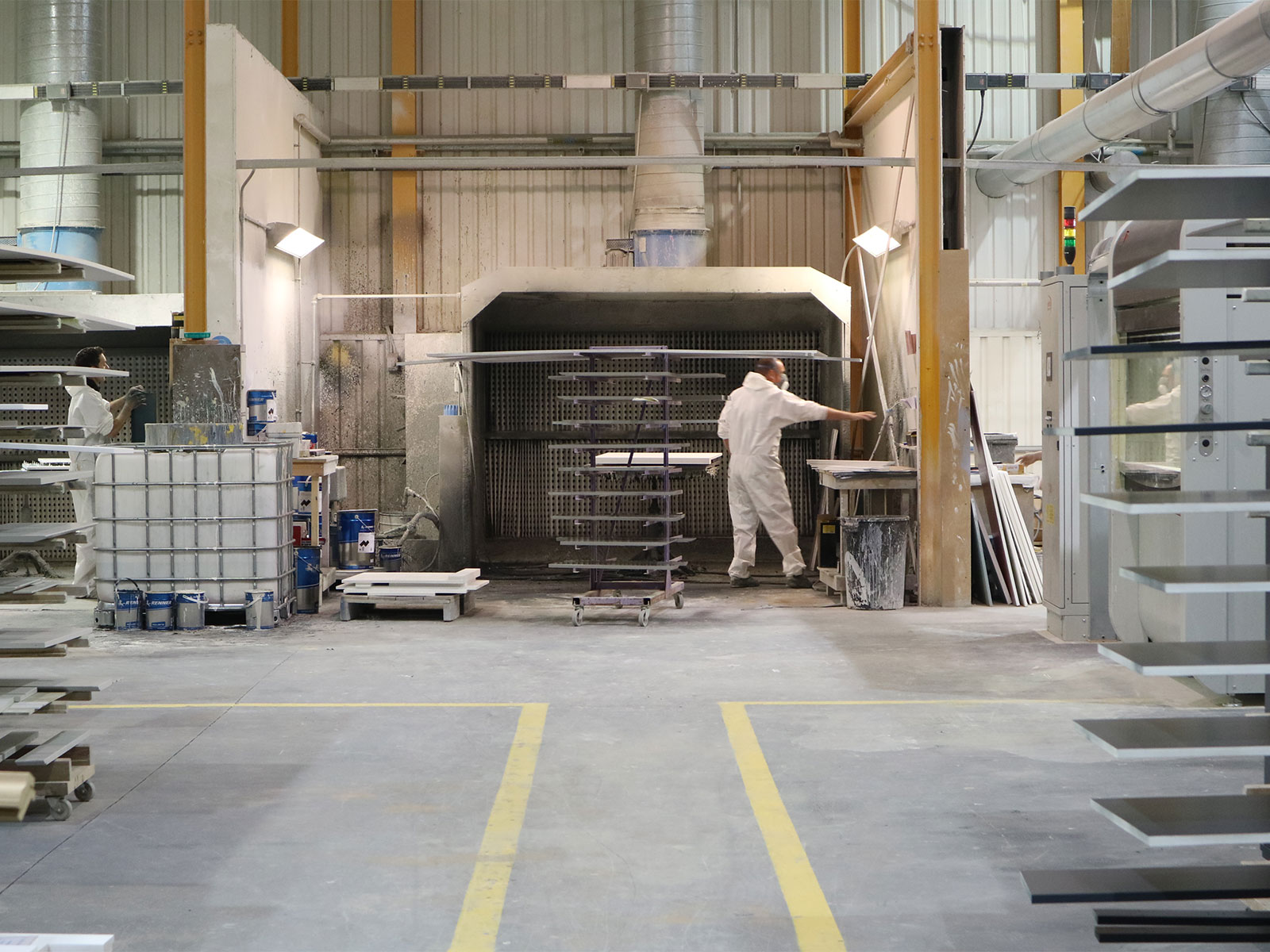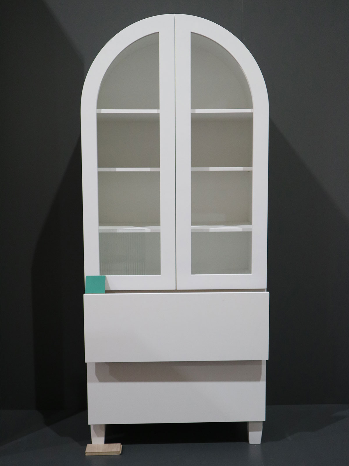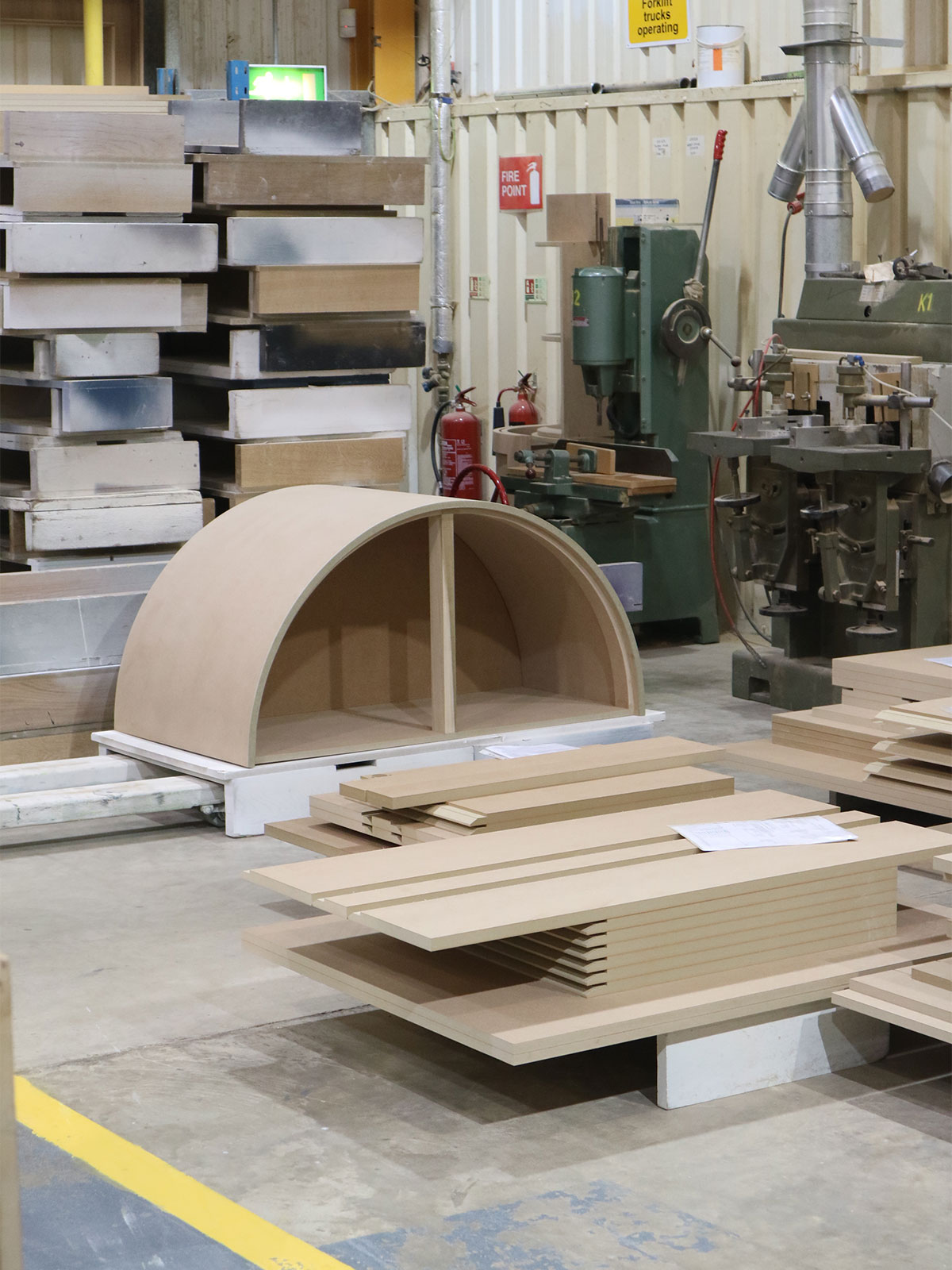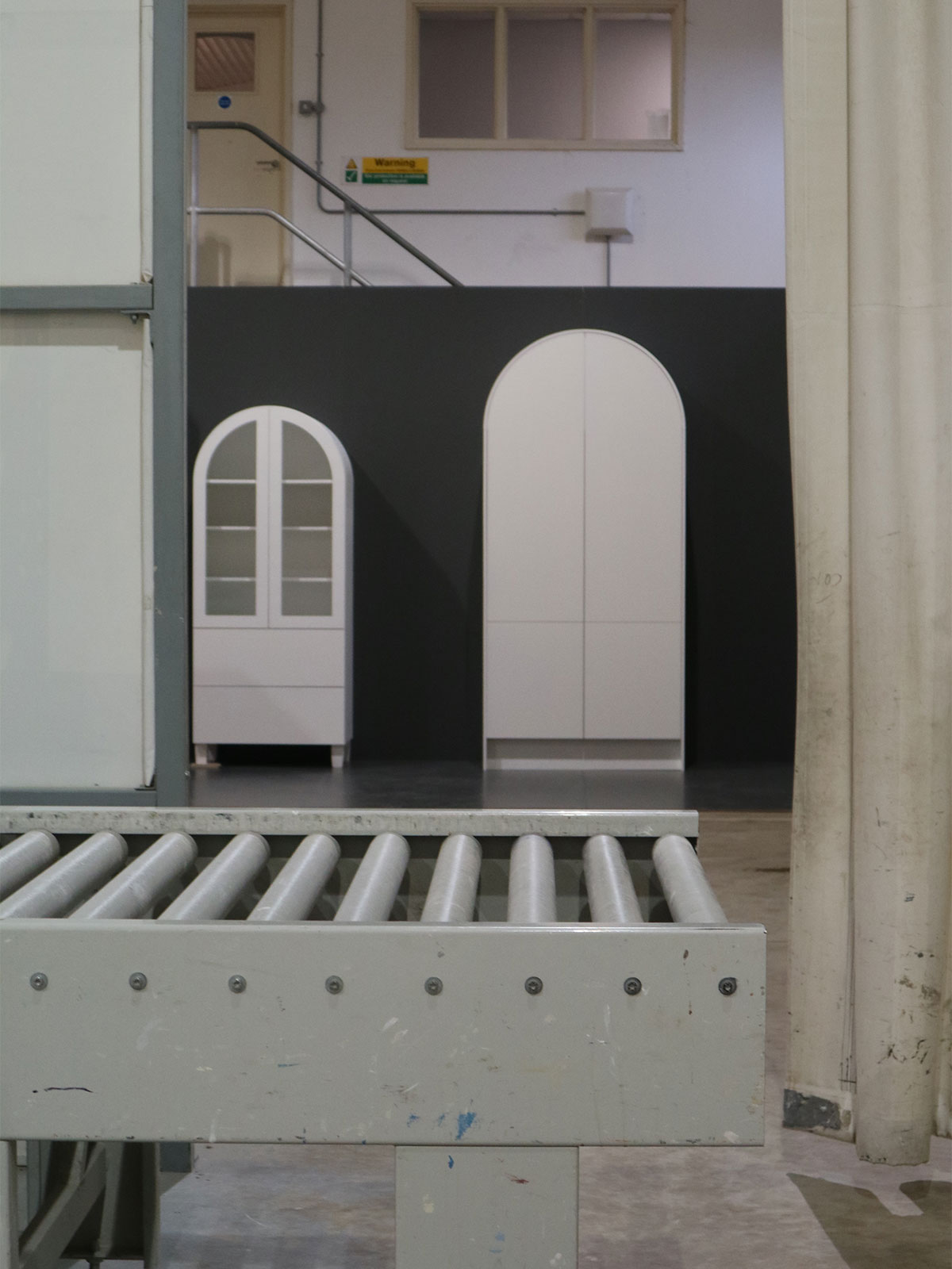In our excitement, we took a trip to the workshop where our kitchen design is being made at John Lewis of Hungerford. We have designed a new arched cabinet and freestanding unit with uniques colour options and reeded glass doors. Here is the first glimpse of them in production, ahead of the kitchen fit out at our Design House.