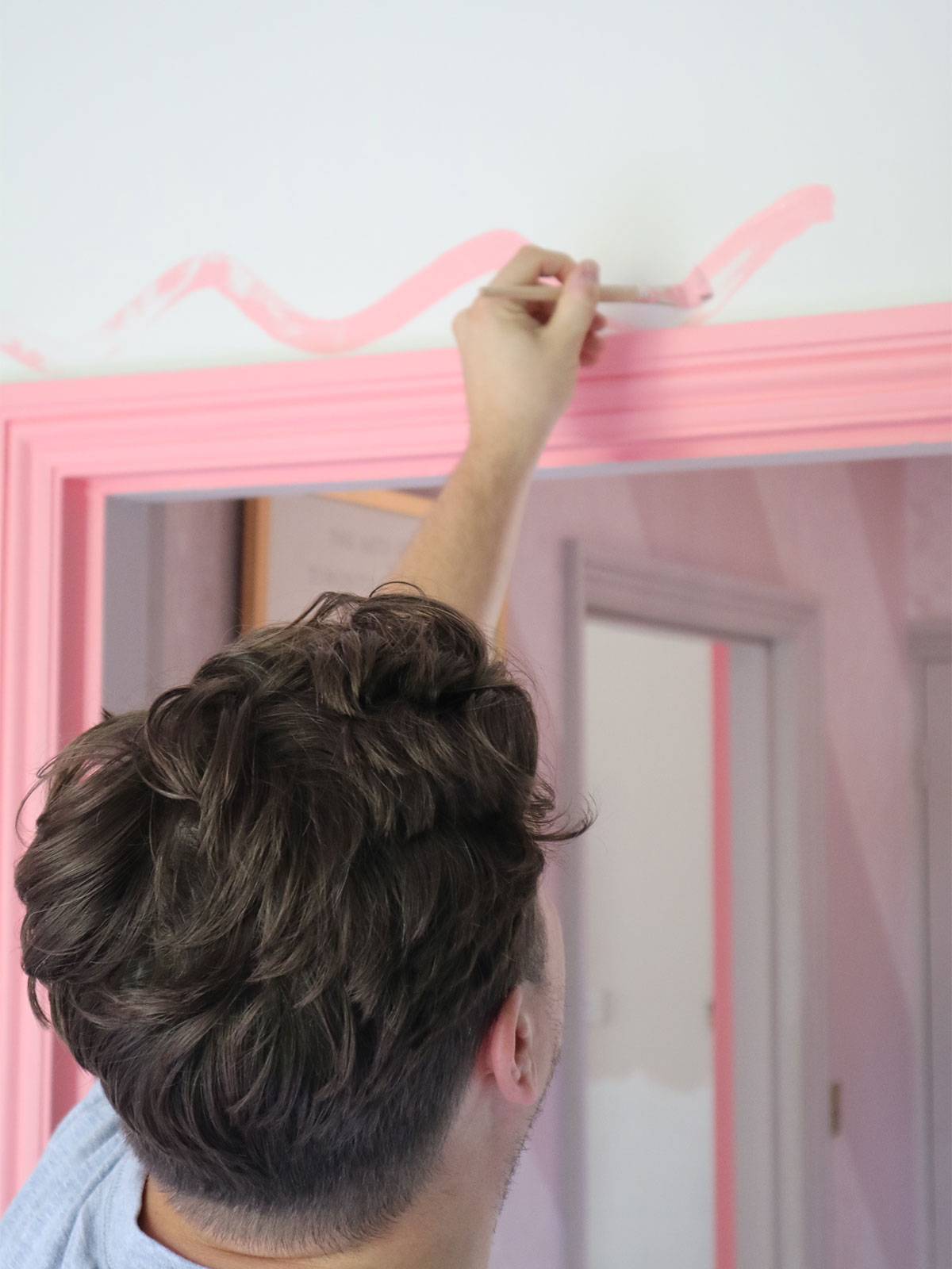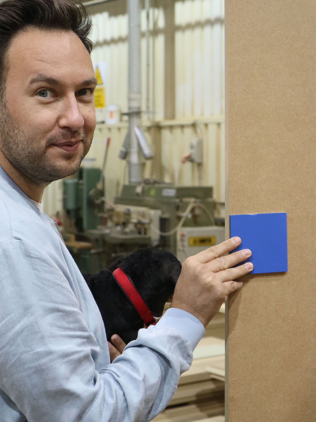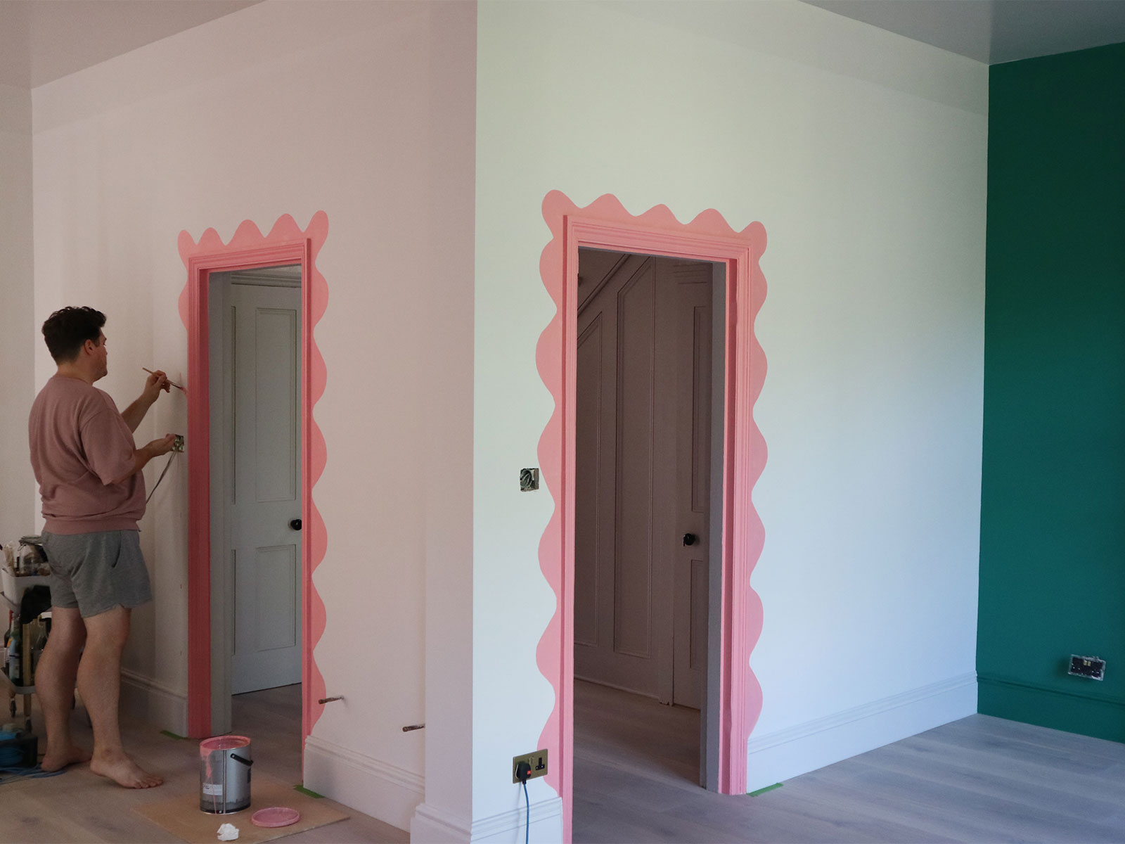 We were invited by John Lewis of Hungerford, the British makers of bespoke kitchens perhaps best known for their iconic freestanding fridges and larders and bold use of colour, to design a new kitchen range for them based on our own design house Kitchen space. So we jumped at it and had a lot of fun in the process. We have gone all out with this one and we will show you the full reveal soon enough, but for now we have some process shots at the factory where our kitchen is being made and we wanted to show you how we painted our decorative door frames – the first curves to arrive in the room we have been passionately renovating for the past few weeks.