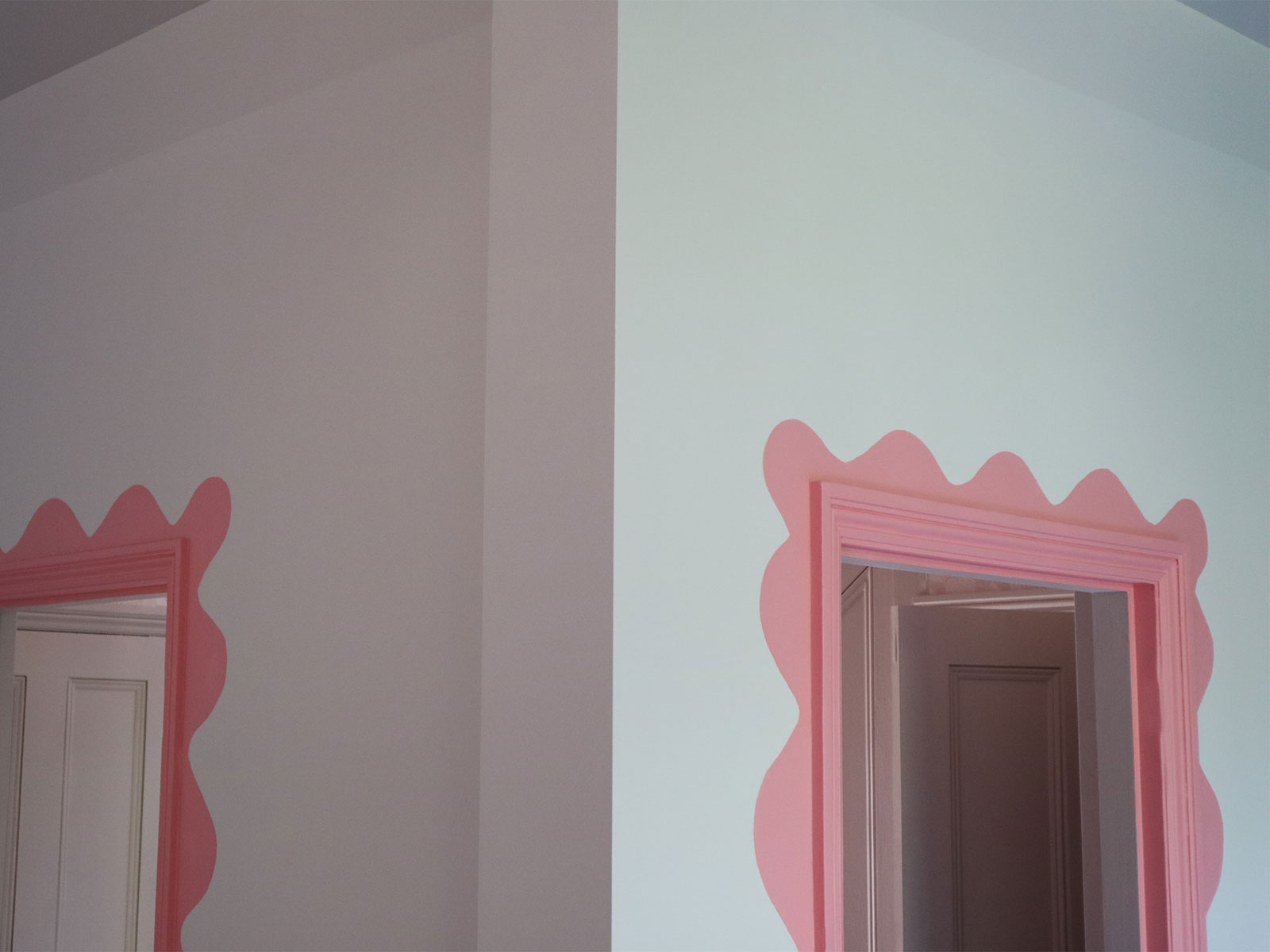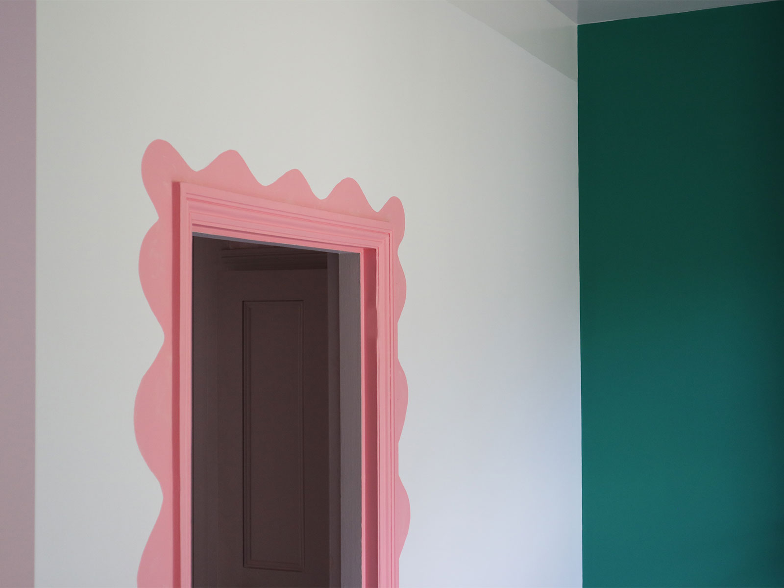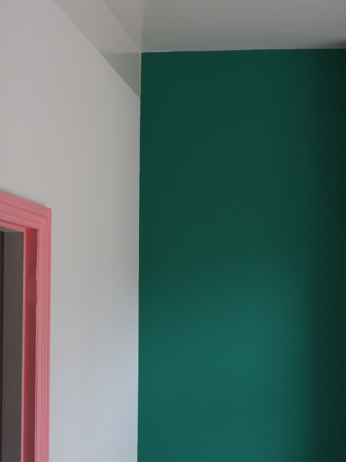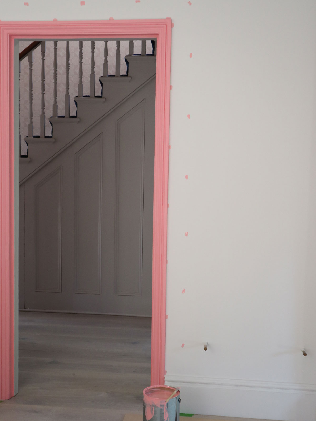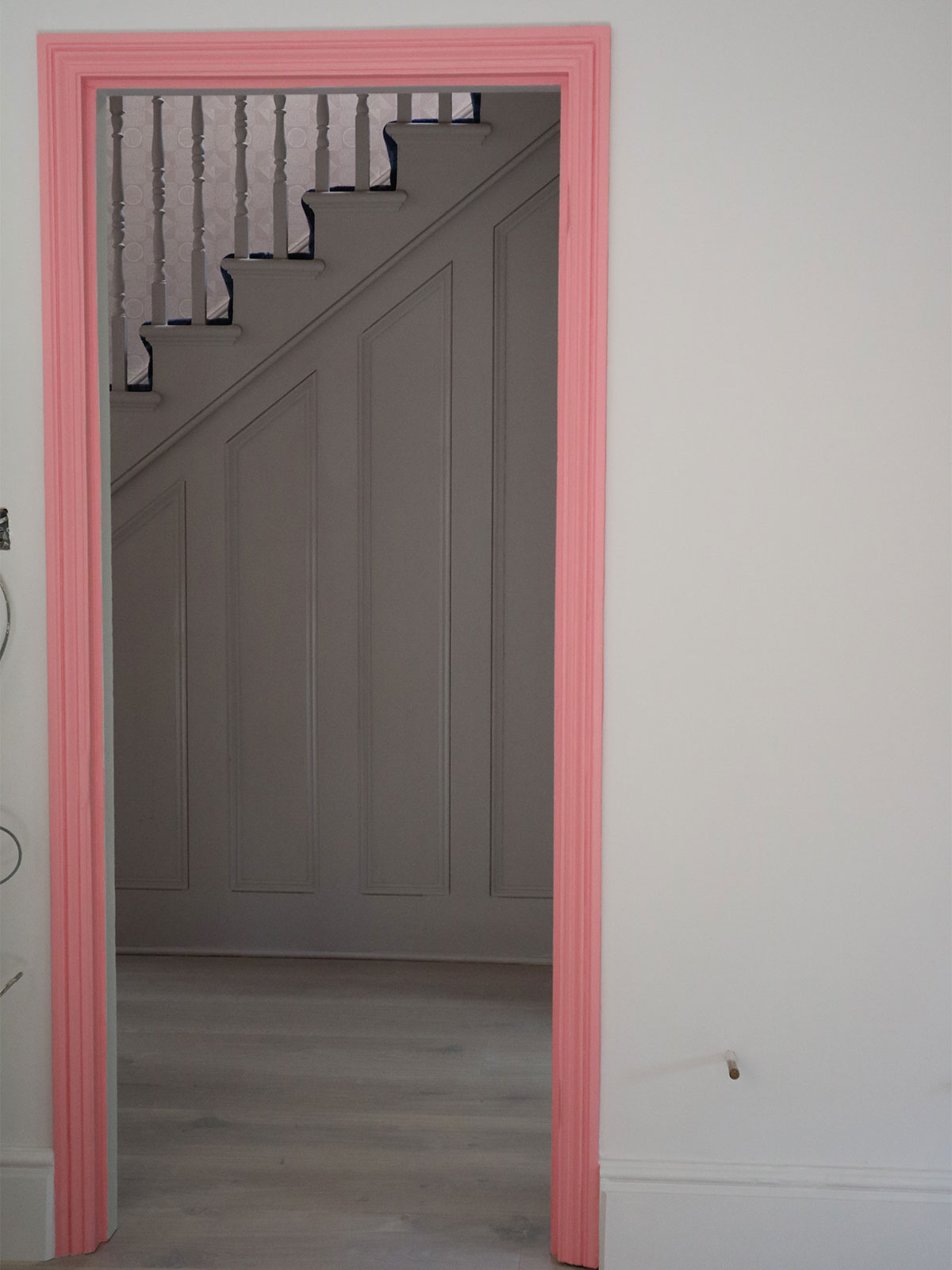 We took inspiration from the Bloomsbury group and from Ettore Sottsass. The pink also feels right at home as the whole hallway was painted this colour when we first bought the house. We are bringing back those roots in our own way. It is a pink from the Mylands Film, Television and Theatre range – FTT005.