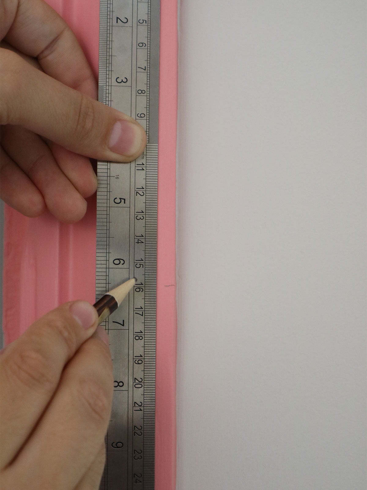 Mark the high and low points with a pencil. We went for 30cm for each full curve, so we marked the frame at 15cm intervals.