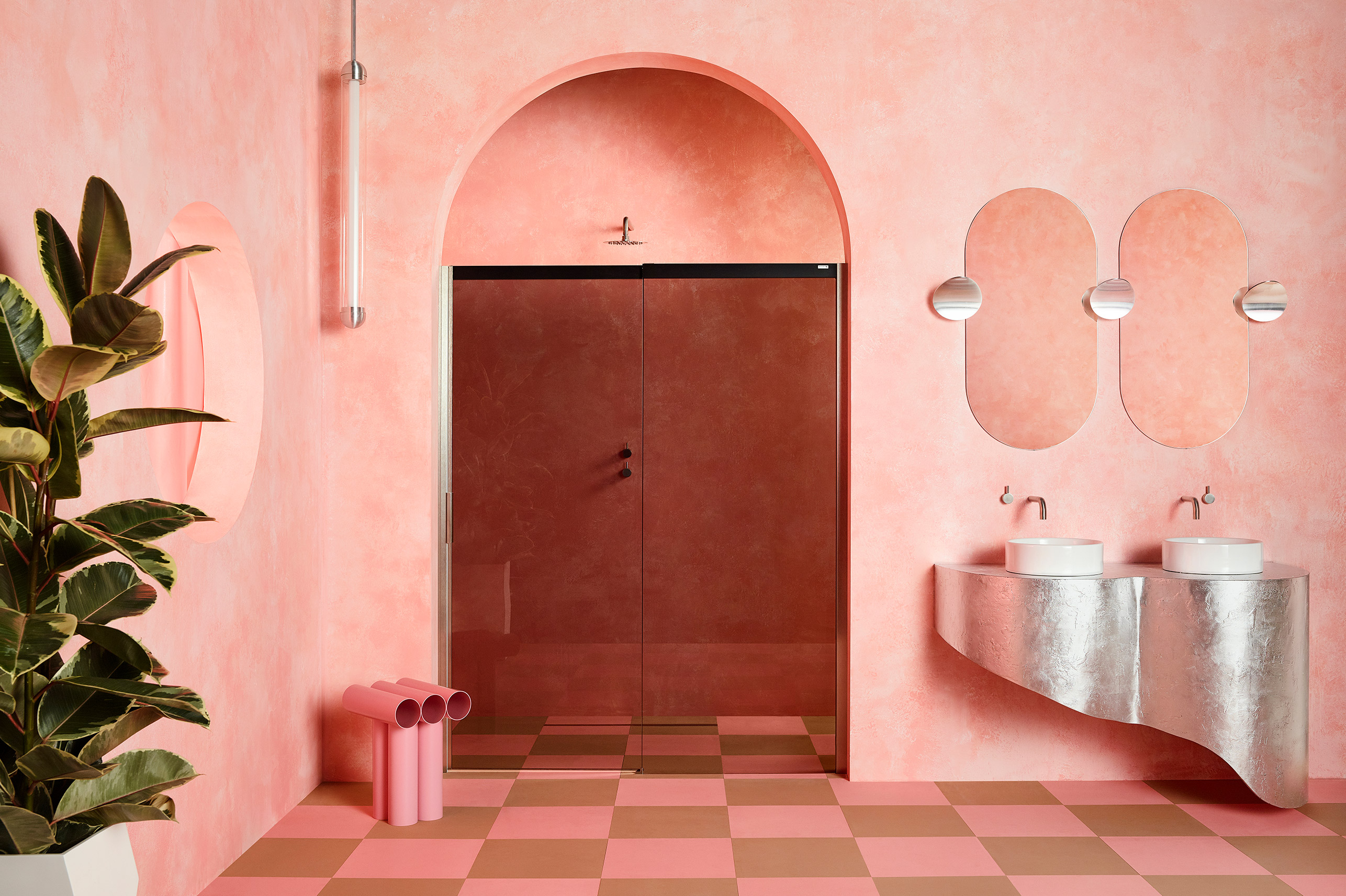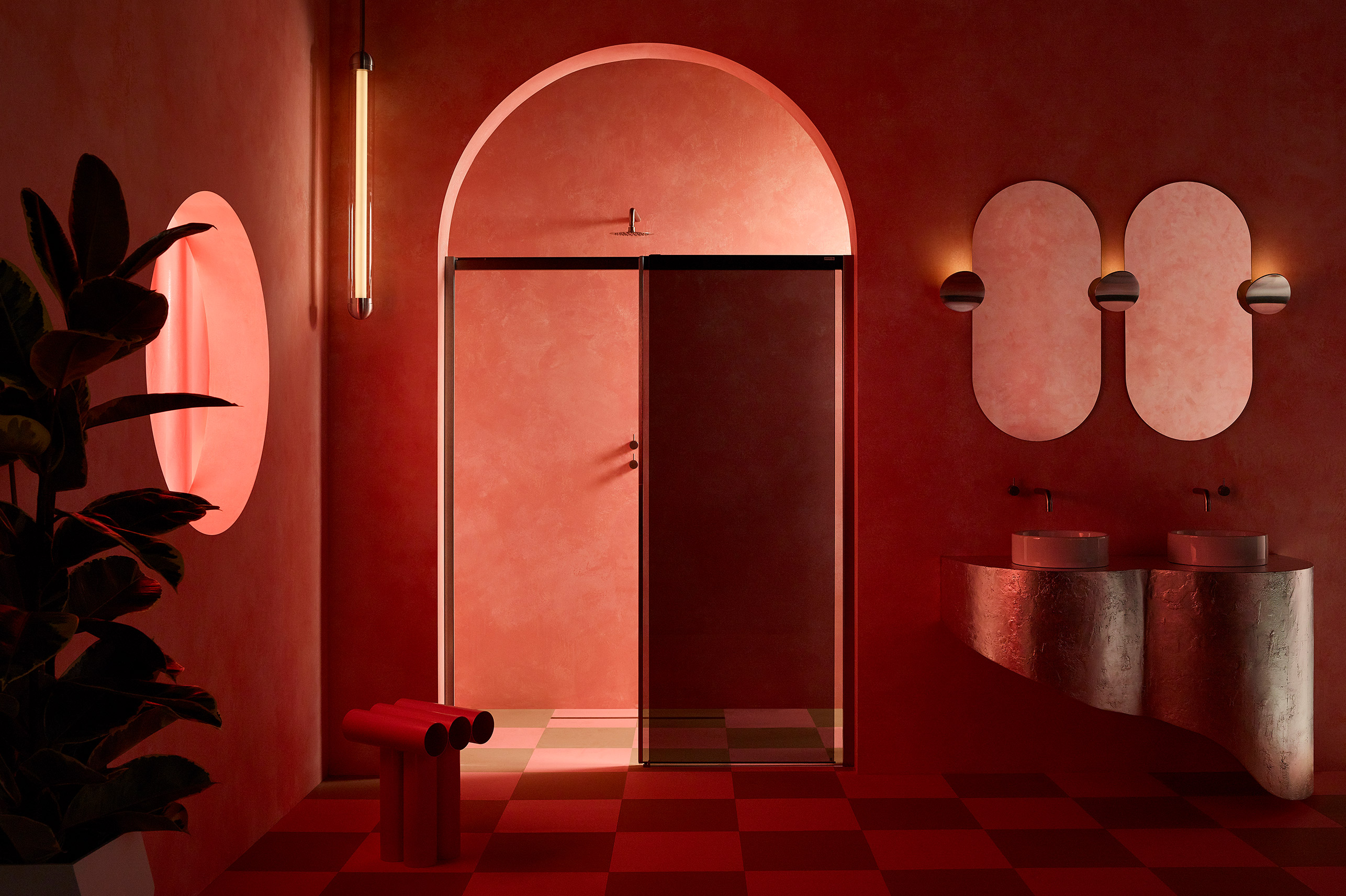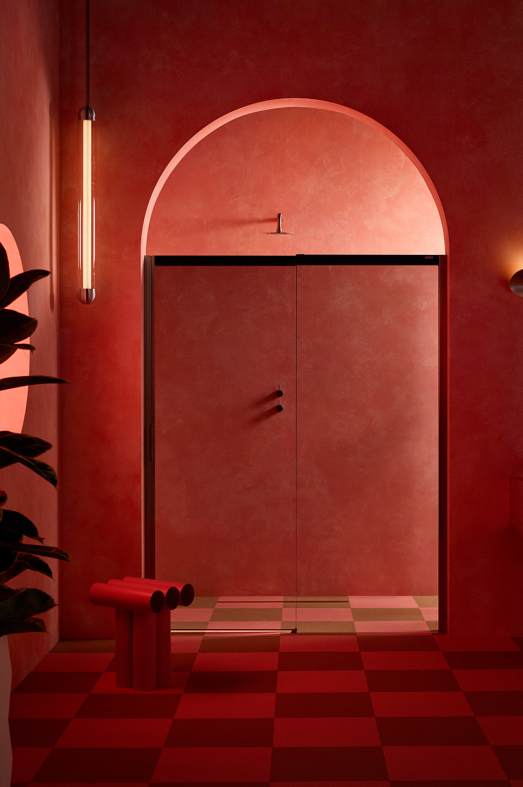 Drawing inspiration from Miami and Milan via David Lynch, our latest interior is designed around the new flagship range of Sealskin duka enclosures and wetroom screens. Showcasing their tailor made service and the range of glass and metal work finishes available. Every space we design is an opportunity to bring a fantasy into reality and the fact that this space is a bathroom did not hold us back from going deep into that fantasy.