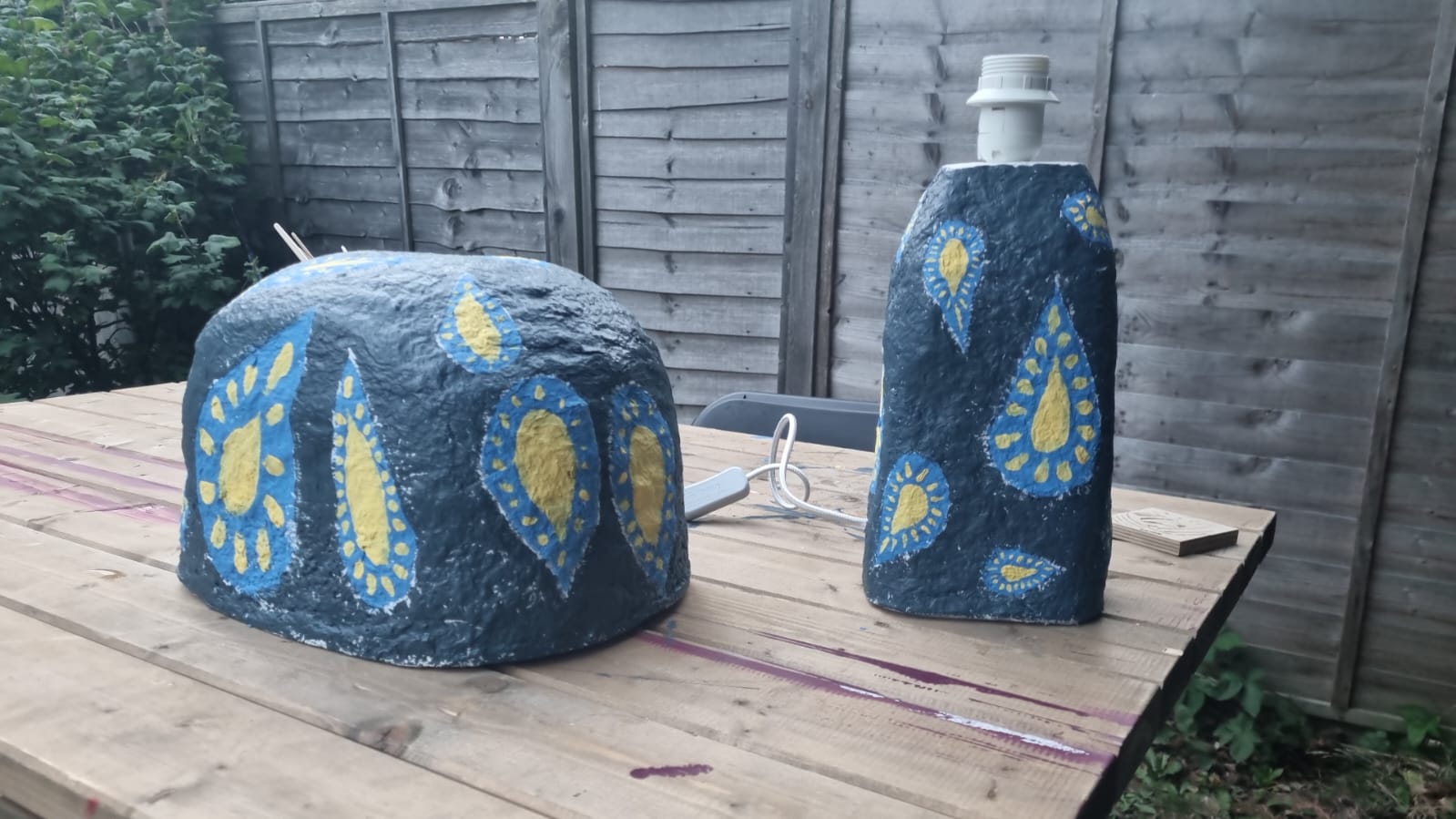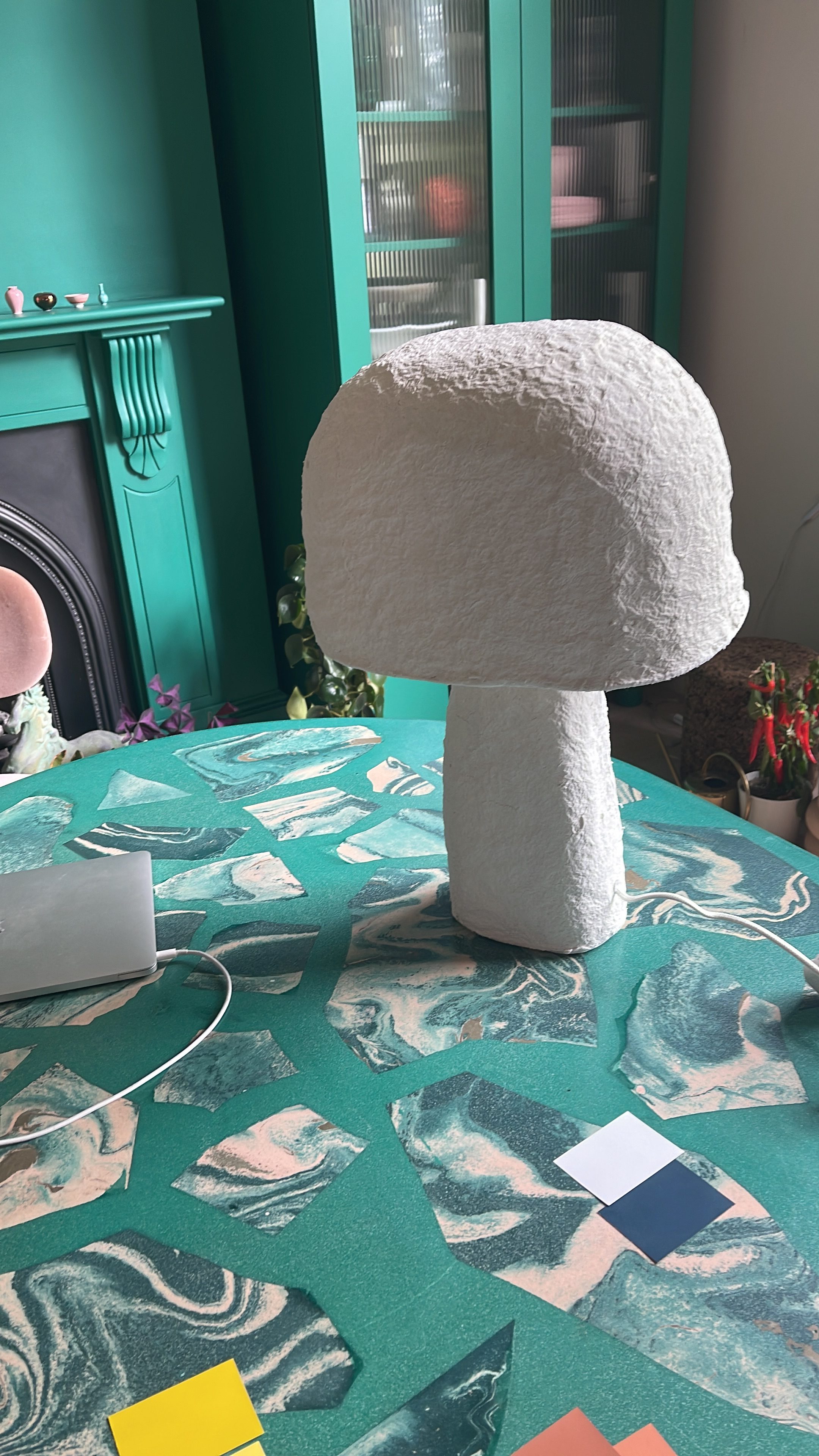 As part of our design we wanted to customise a high street lamp. Whinnie was a star and video called us to have a sneak peek of the homeowner's wardrobe as we had planned to base the painted motif on a favourite piece of the homeowner's clothing.