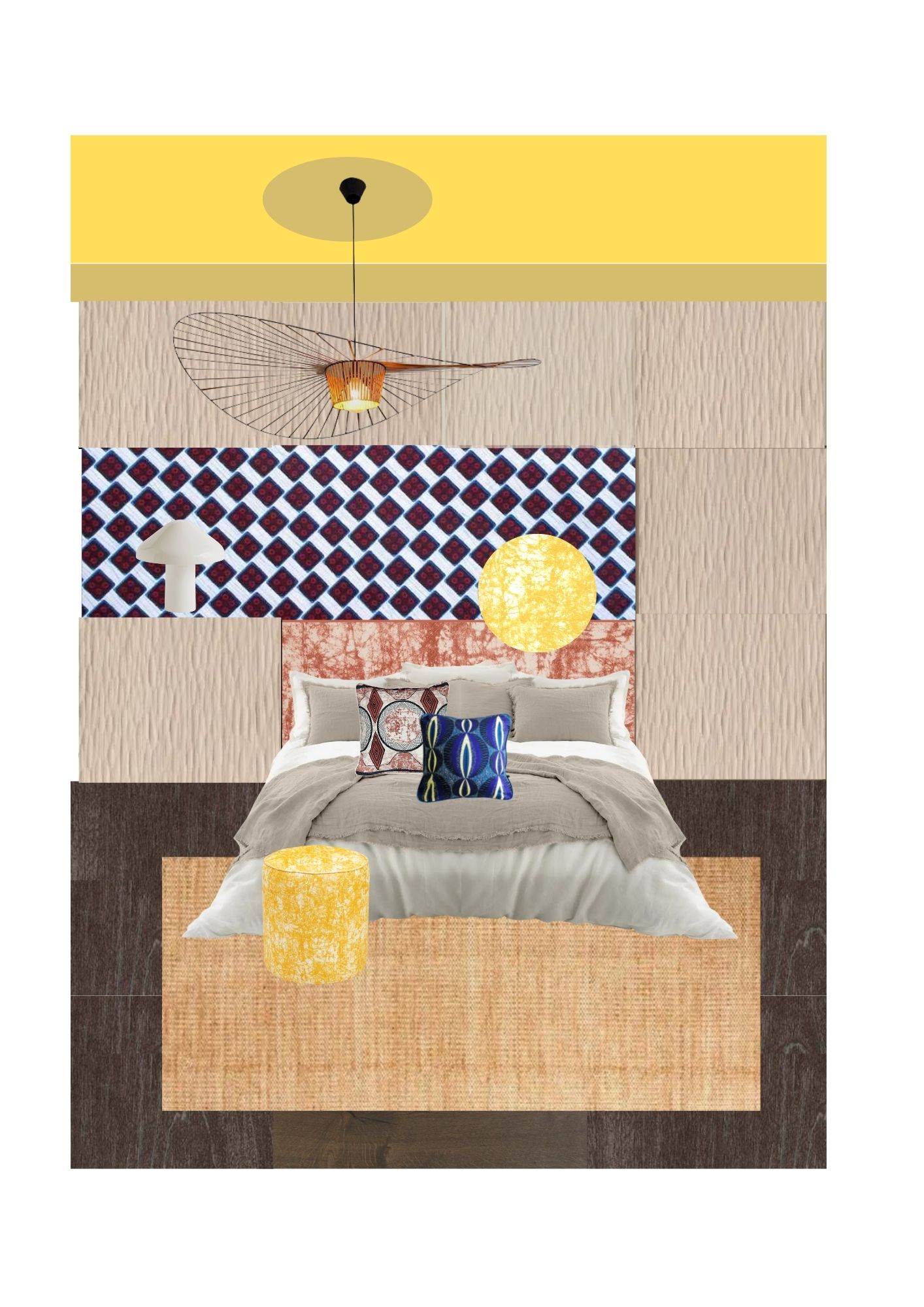 Eva Sonaike for her beautiful pouffe and West African inspired textiles on the headboard