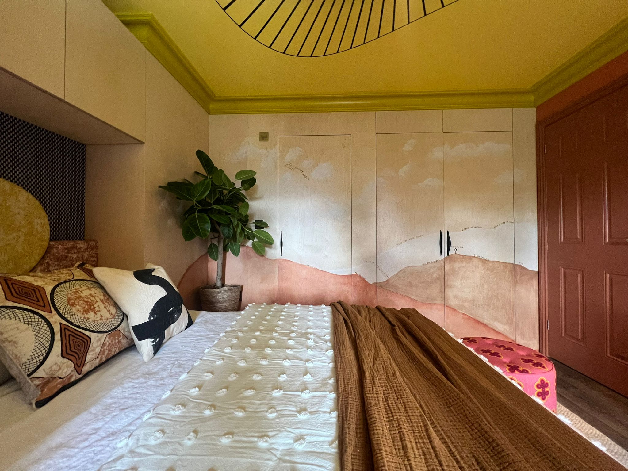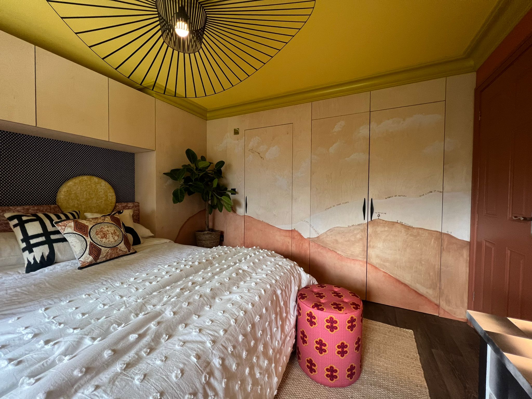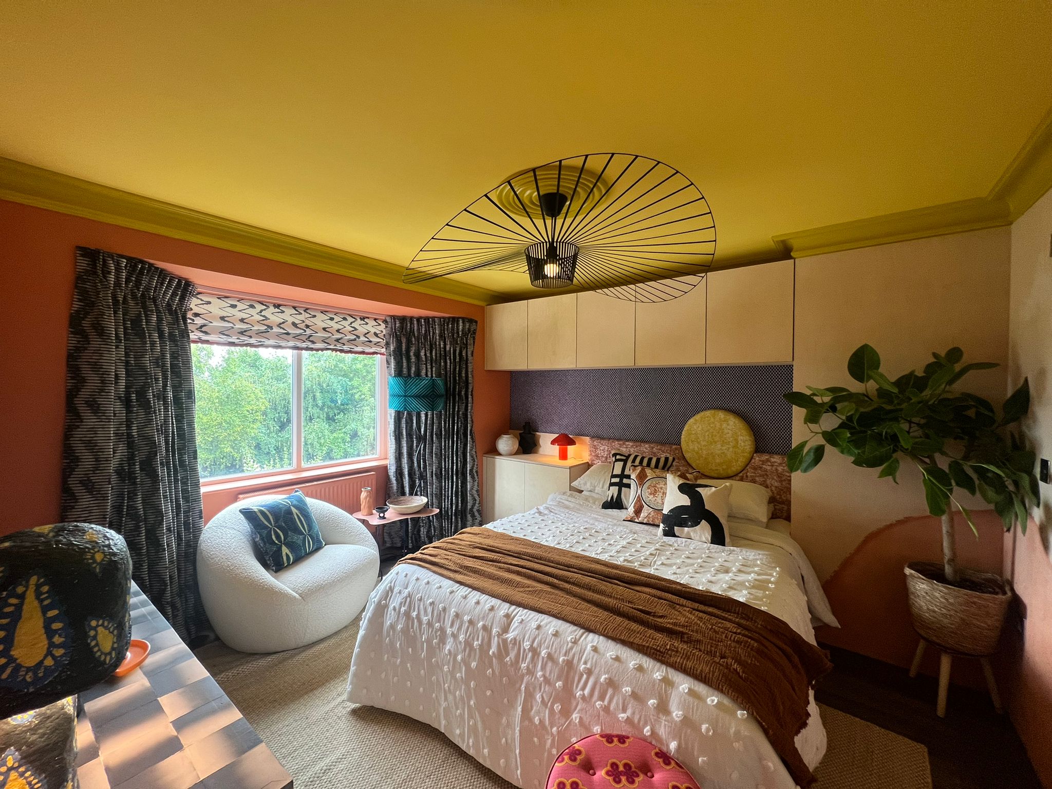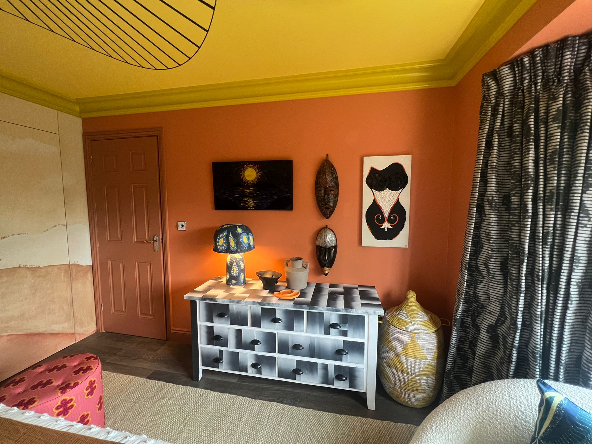 Here comes the sun! our celebration of the artist that we designed the room for, with colours based on the homeowner's own vibrant mosaic artwork. Not a pastel in sight for this lover of rich warm tones.