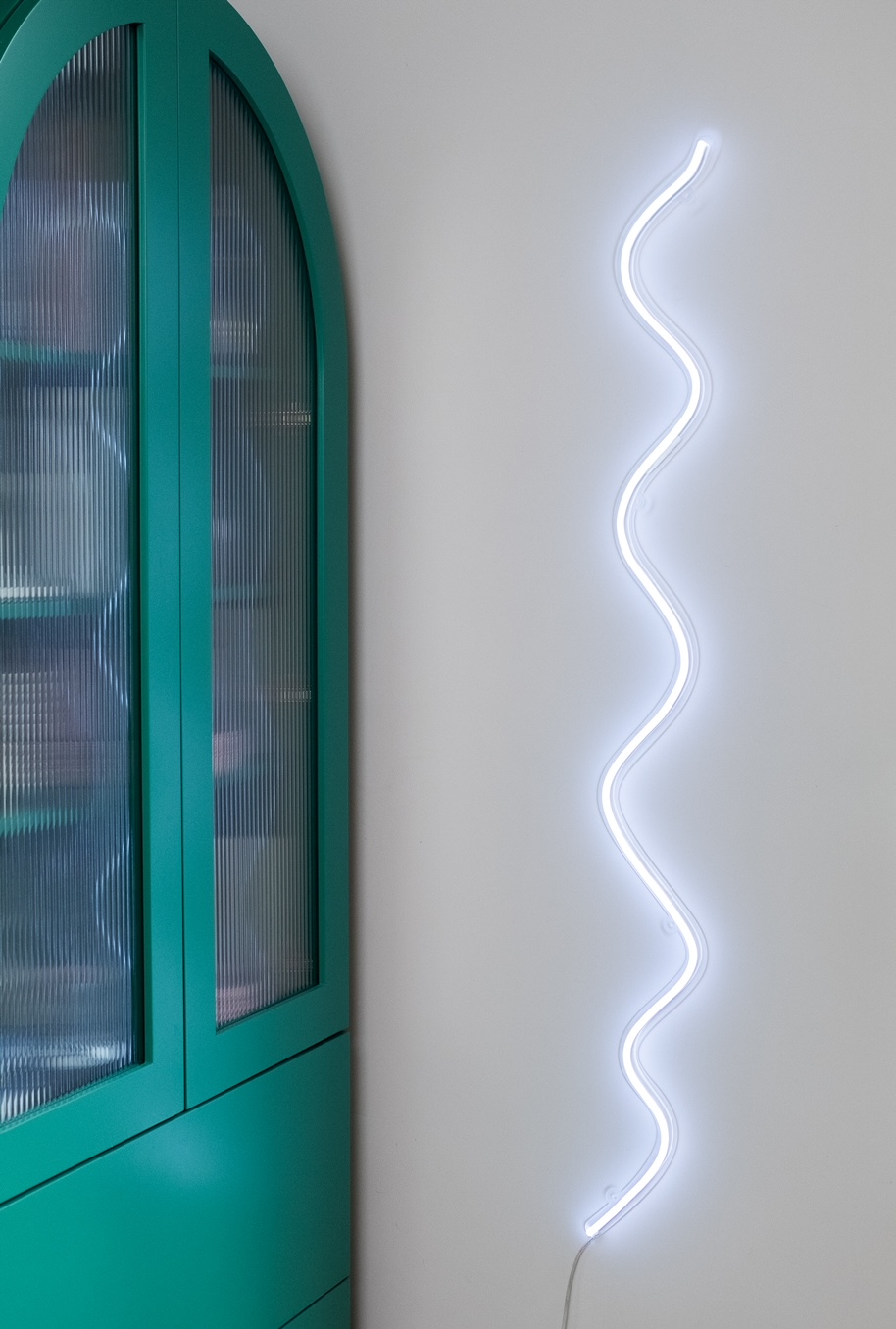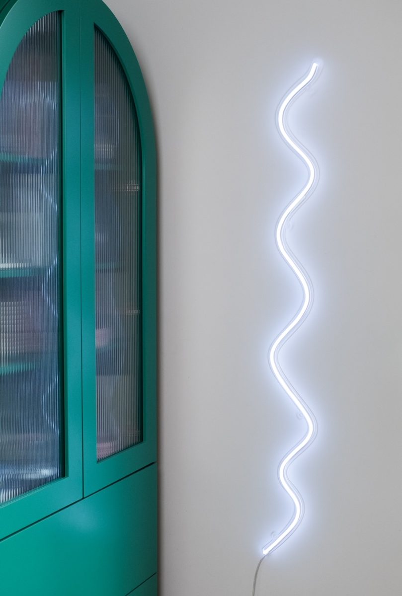 “Think of our squiggle as a rule break, a disruption of the norm, a softening of hard lines. Perfect in its imperfection, the smooth wave shows that you love freedom and openness in your home.”