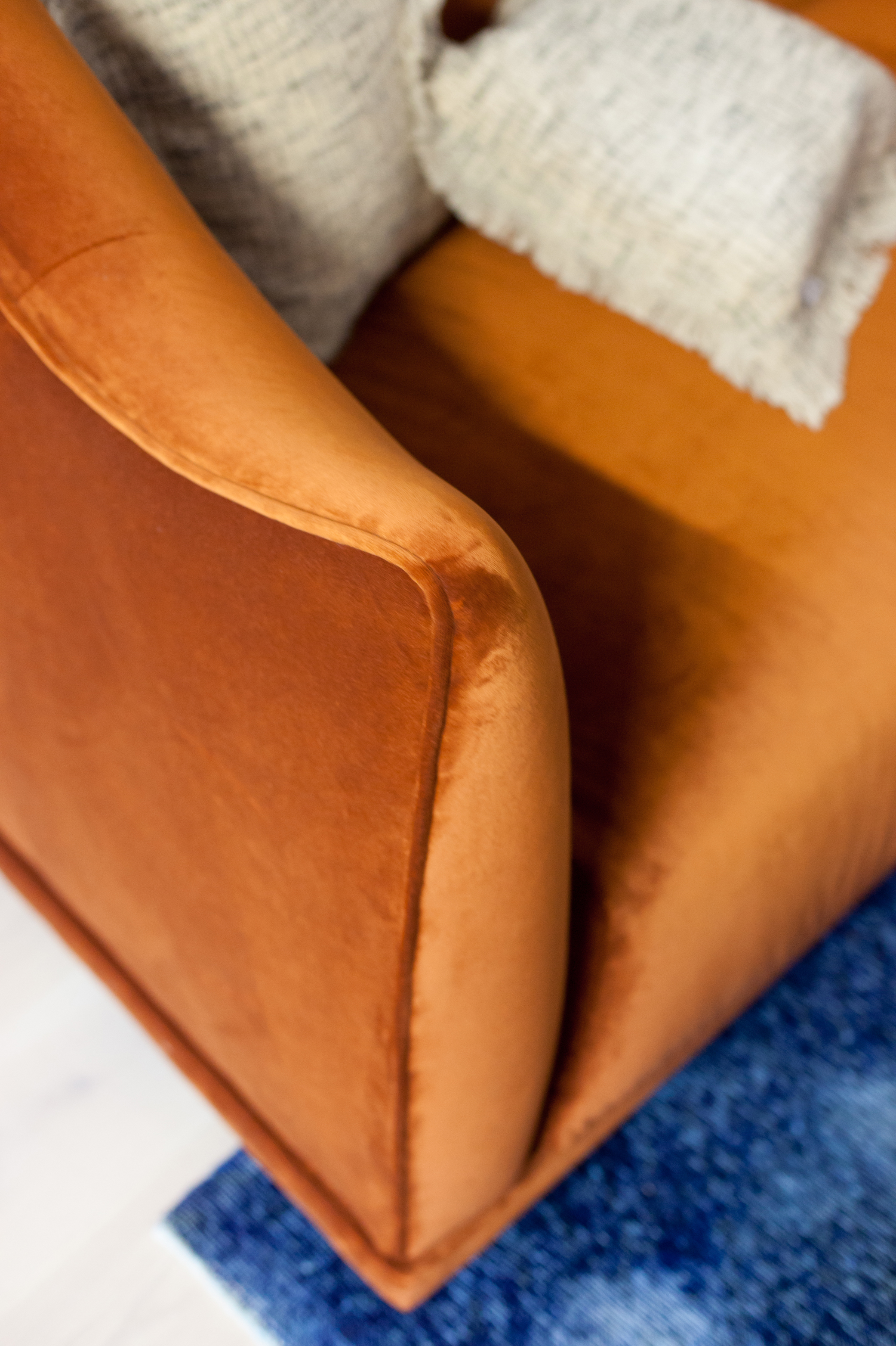 The Tilda sofa was named after our favourite actress, Tilda Swinton, and was inspired by a trip to visit the setting of her movie, I Am Love, Villa Necchi in Milan. There we saw a large curved sofa and it left a huge impression on us. This is our contemporary riff on that sofa and is designed with two high backed corners. perfect for putting your feet up and resting on lazy sunday, but still elegant enough to keep your living space looking beautiful.