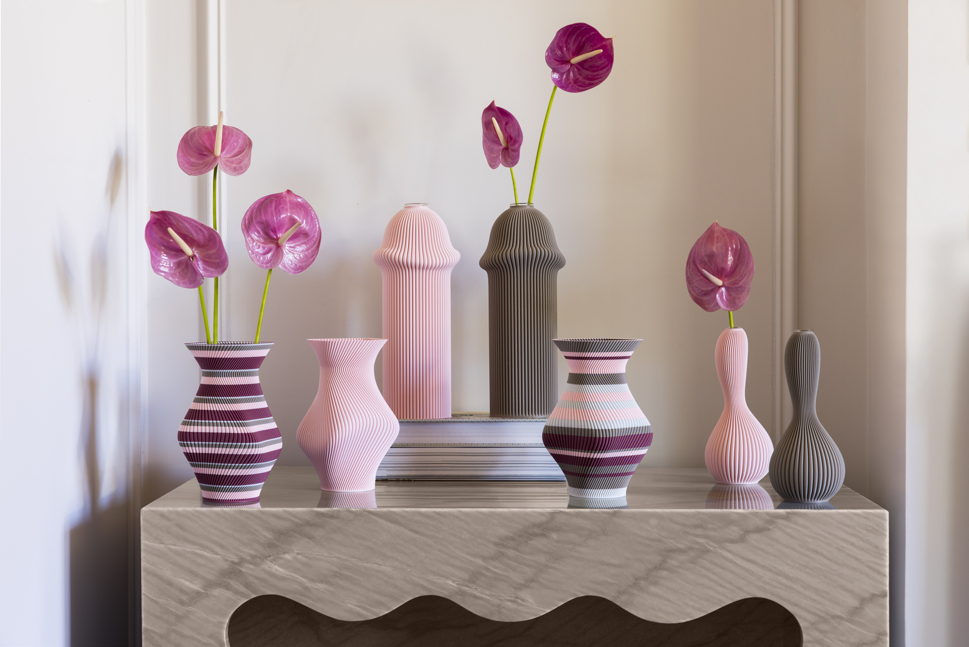 Crossing borders and breaking boundaries, this series of 3D printed designs embodies the essence of queerness and intimacy. This new collection, available to order here, came out of a meeting in Vienna between the Austrian based Sheyn and London based 2LG. By dissolving the walls between form and function, these 3 new vase designs become more than just decorative pieces — they are unapologetic embodiments of inclusivity, acceptance, and belonging.
