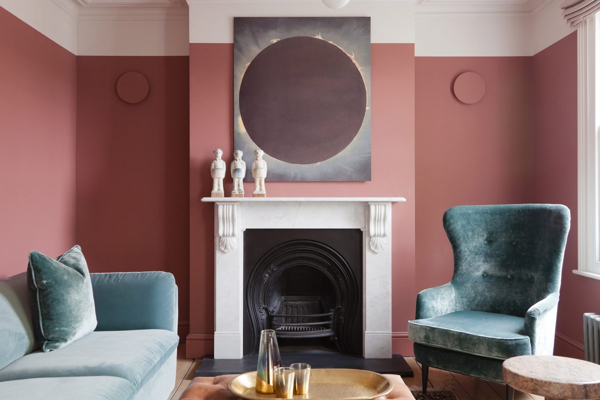 The colour palette modulates throughout the property but always connecting to the key tones of Calamine and Candy pink. The colours are a key part of the atmosphere and identity of this house. They bring out a sense of boldness and wit. Creating a welcoming, human feel as soon as you enter.