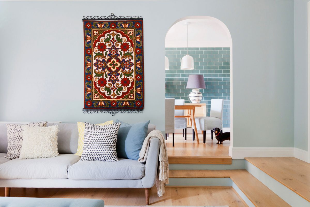 This brave client embraced our decorative joy with a bold statement wallpaper in the entrance hallway, giving a feeling of compression before you enter the light filled living space and bedrooms.
