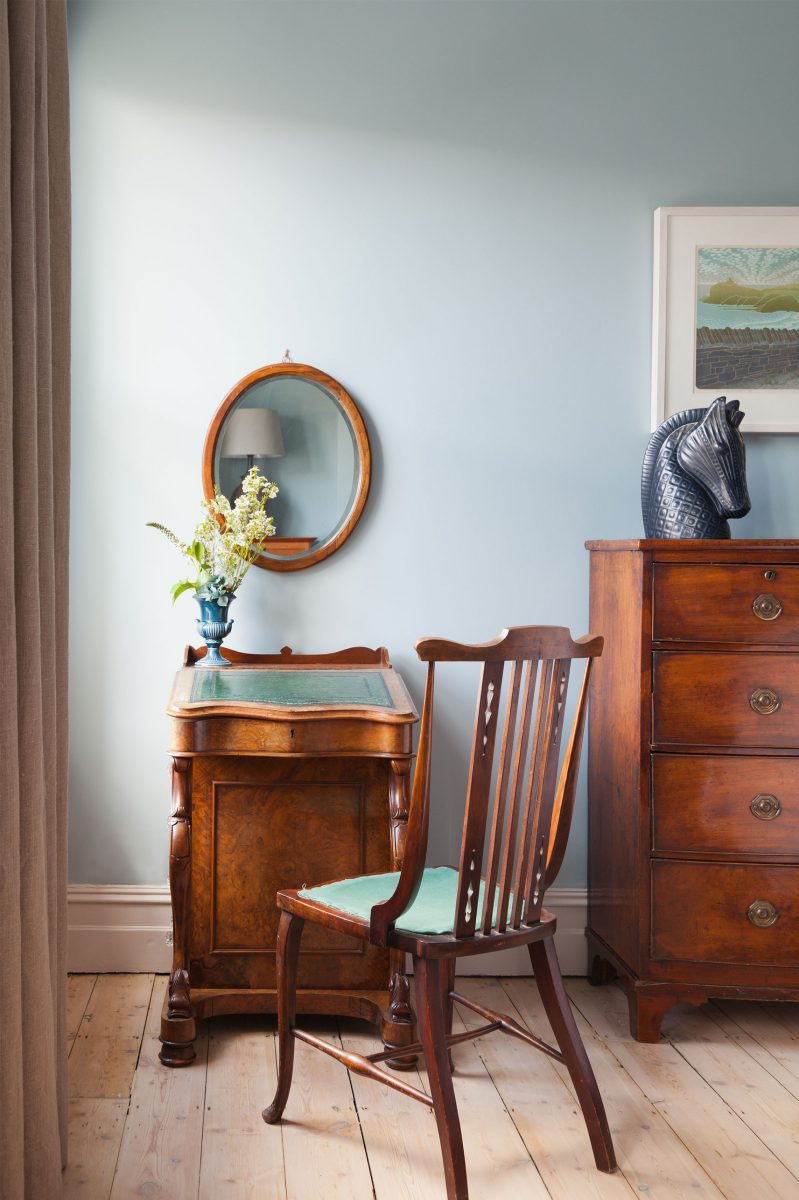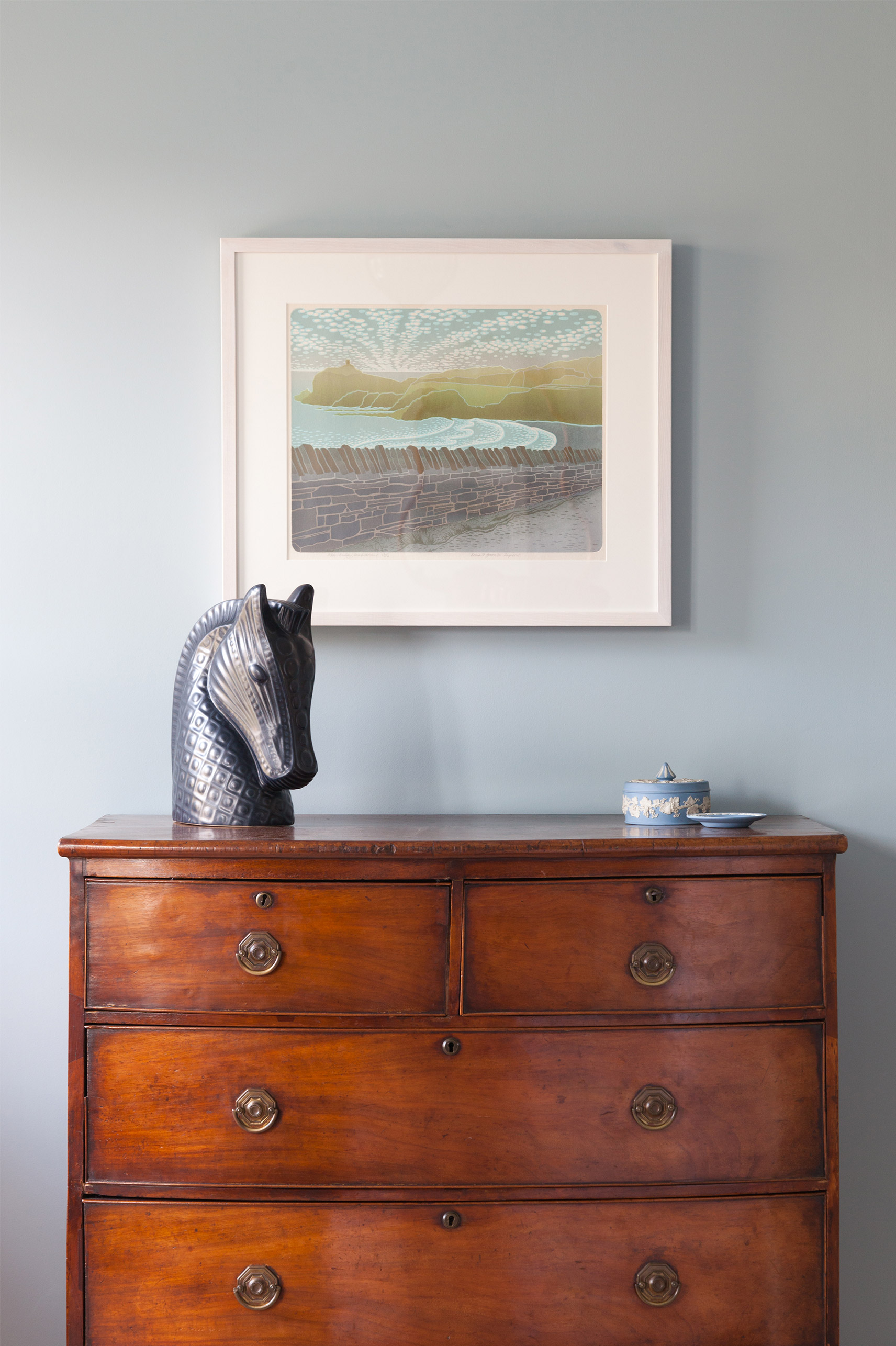 We decluttered the spaces and refocussed their function, giving the owner a dressing room in one of the little used bedrooms. Curating the stunning artwork and antique pieces, with added extras sourced by us, was key and we used a wallpaper illustrating clouds throughout the hallways to connect all the rooms.