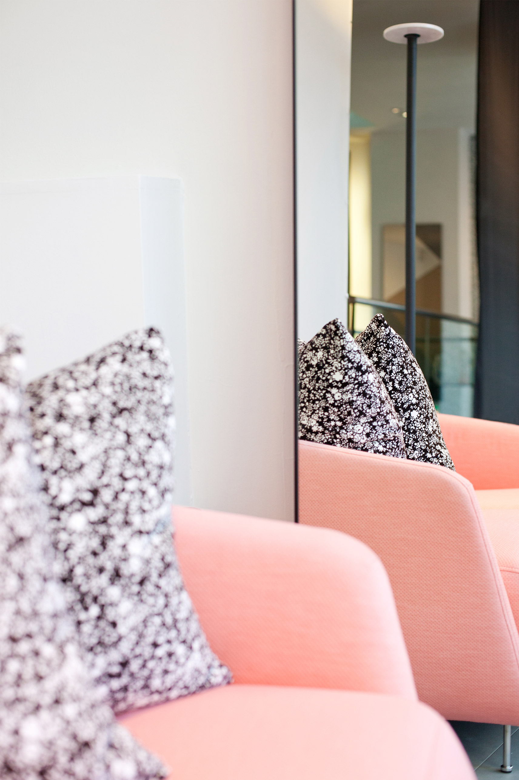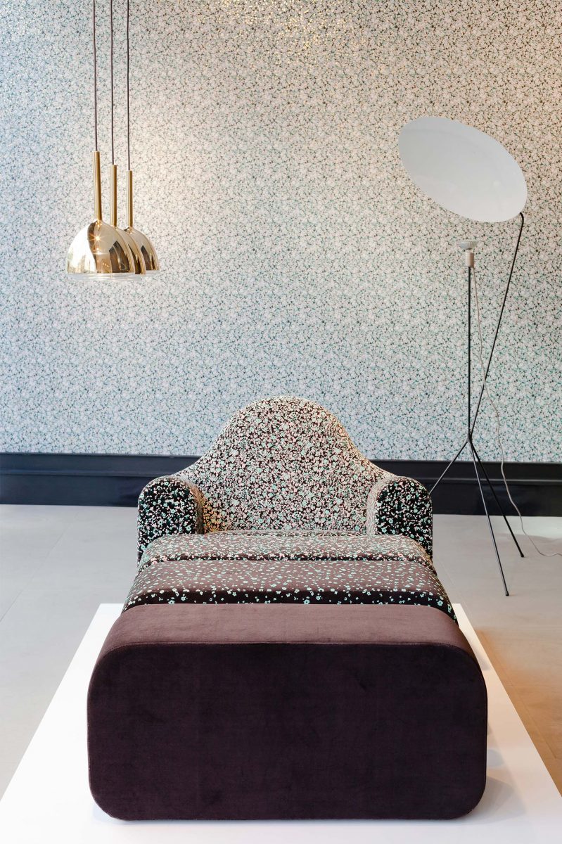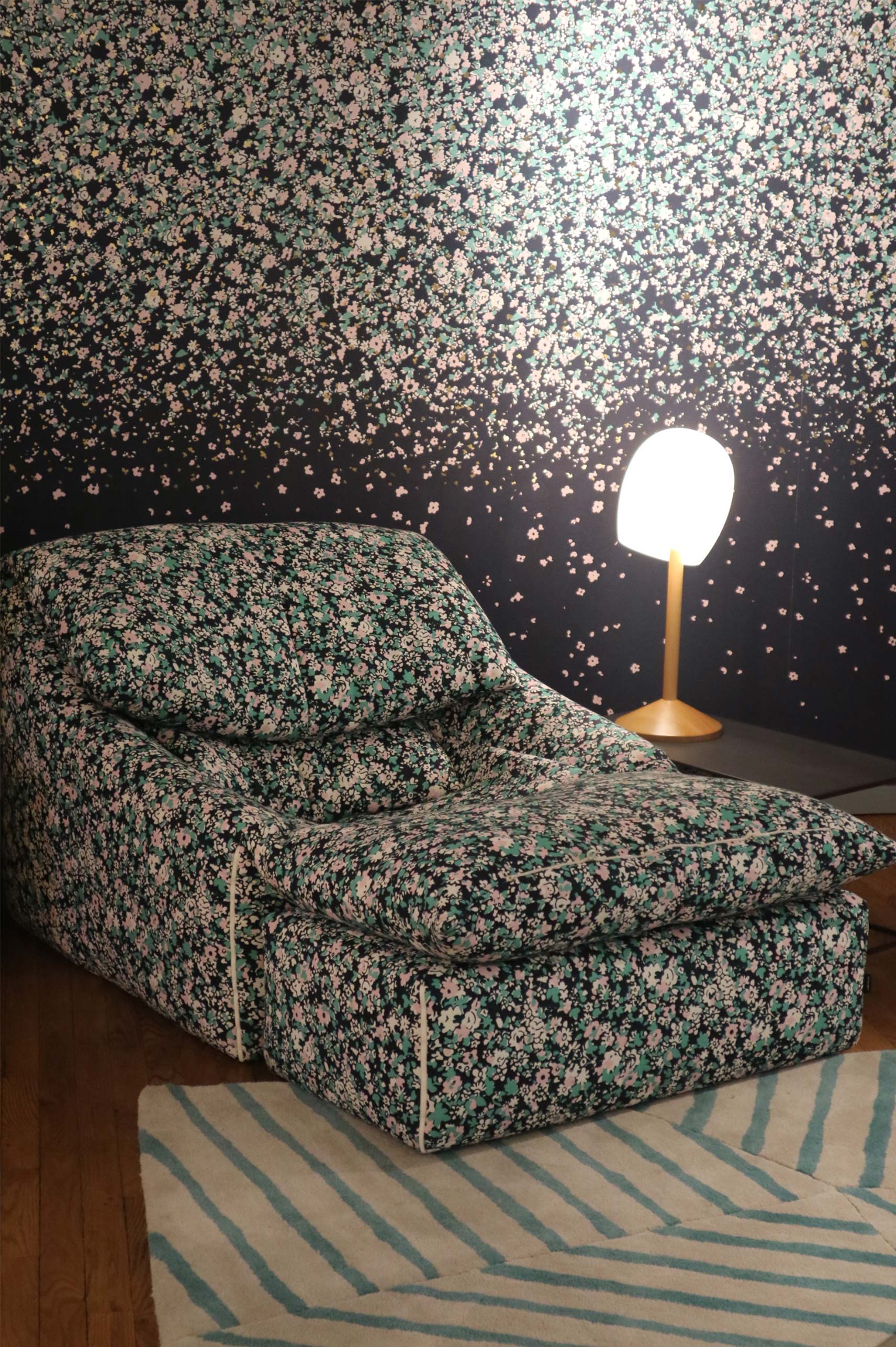 We were invited to ‘Re-imagine’ the Ligne Roset london showroom and we immediately thought of using print design to give the showroom an uncharacteristic decorative twist, bringing our unique interior aesthetic to this modern design brand. The re-launched Slice chair by Pierre Charpin was the perfect piece to show our fractured floral designs.