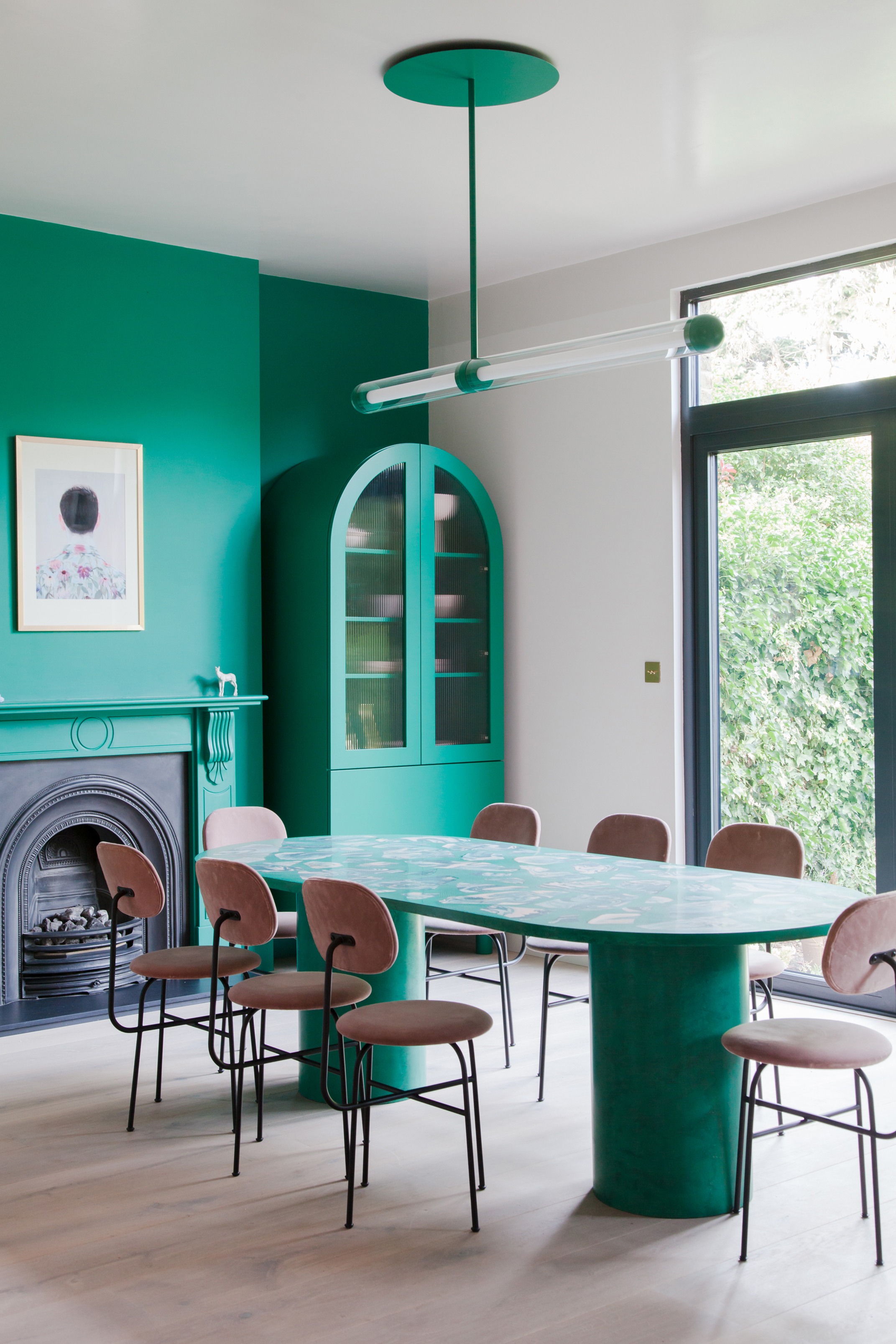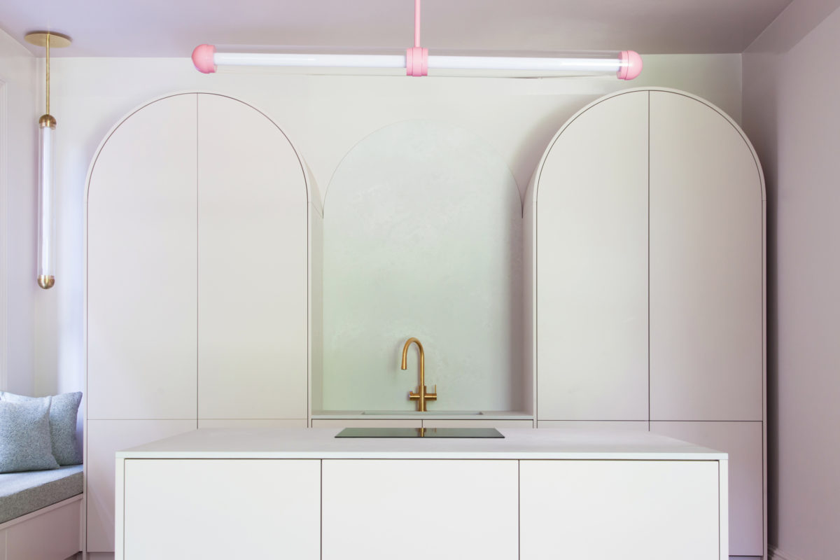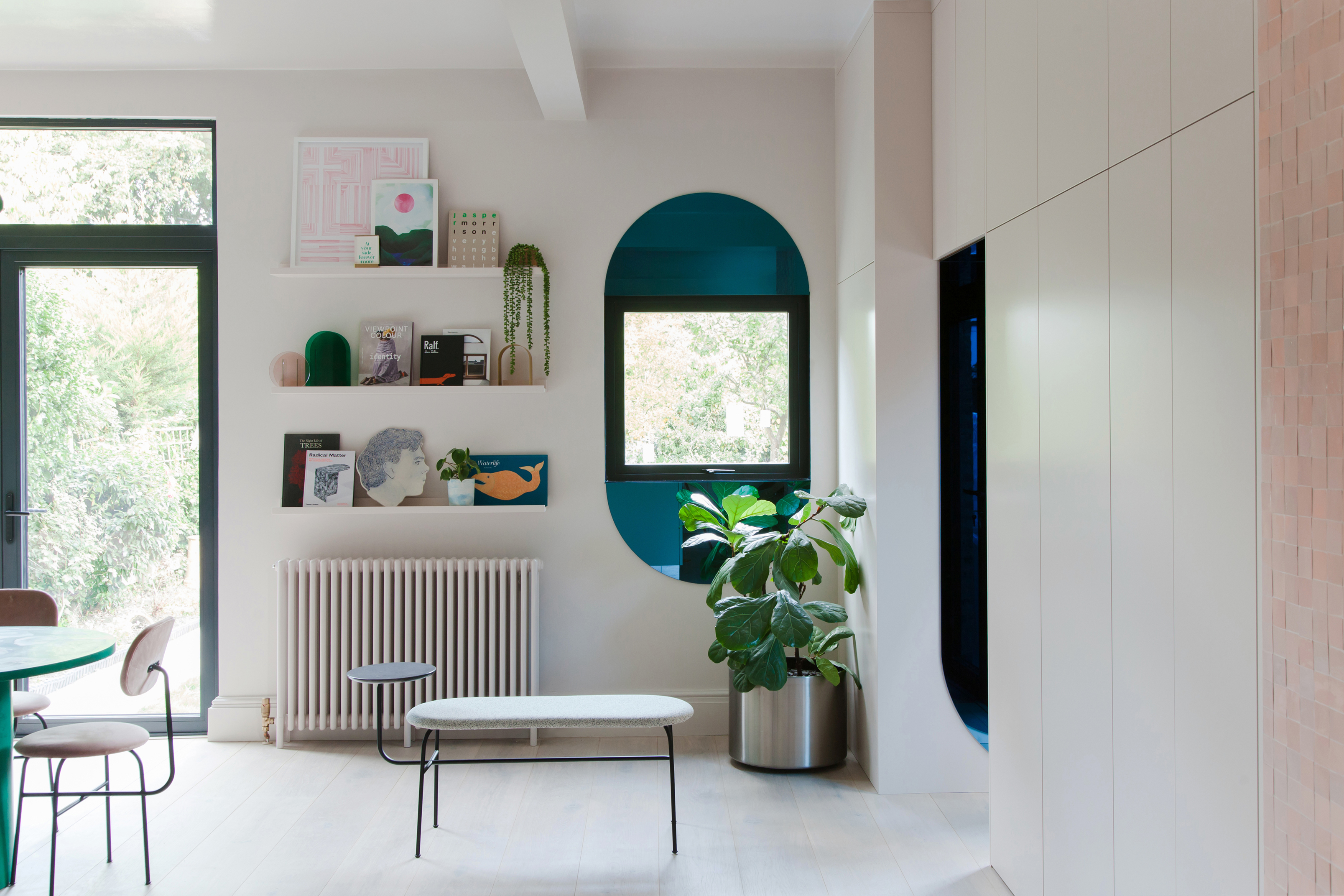 As the house evolves with us, it has been through many stages, acting not only as a home, but as a backdrop for our work as designers. So far we have restored the roof and chimneys, the original sash windows and floors. We have completed the pink bathroom, updated the front door, given ourselves a wonder closet for a WC, created an entrance hallway the previous owners would have loved, we hope, and given the lounge added panelling to go with the original coving and ceiling rose, based on pencil markings we found on the walls under the old wallpaper. The open plan kitchen/diner/studio space is the heart of the project and was the inspiration behind many new product designs.
