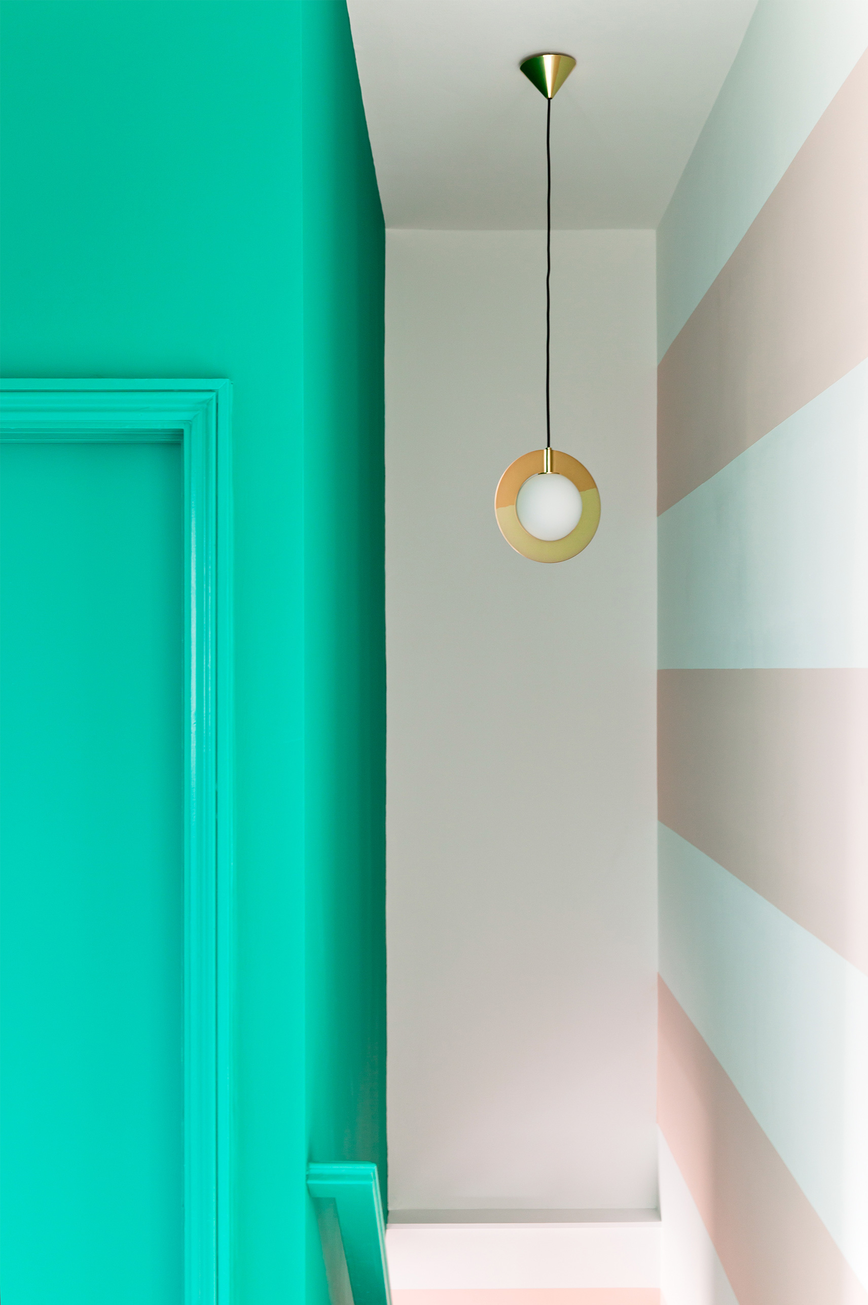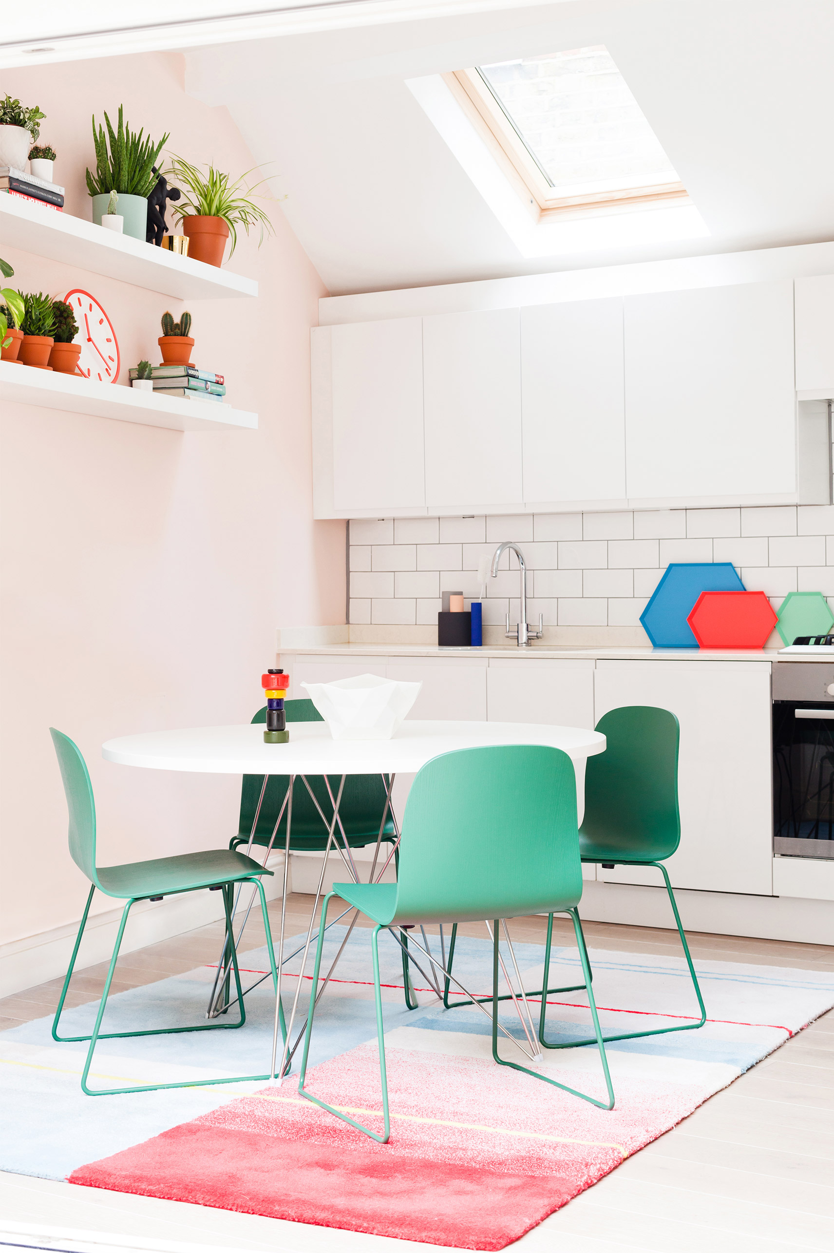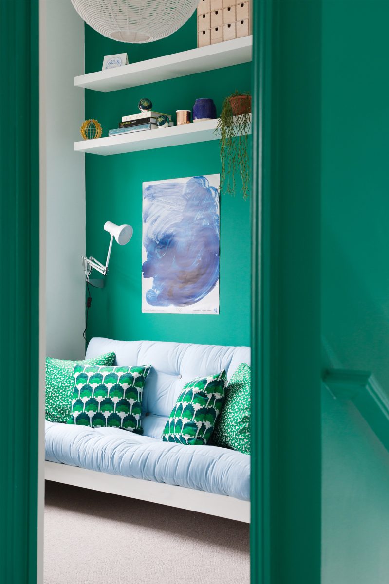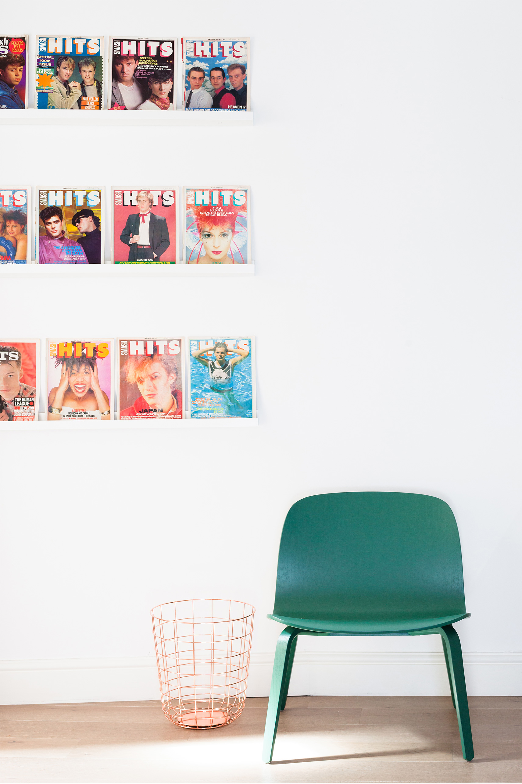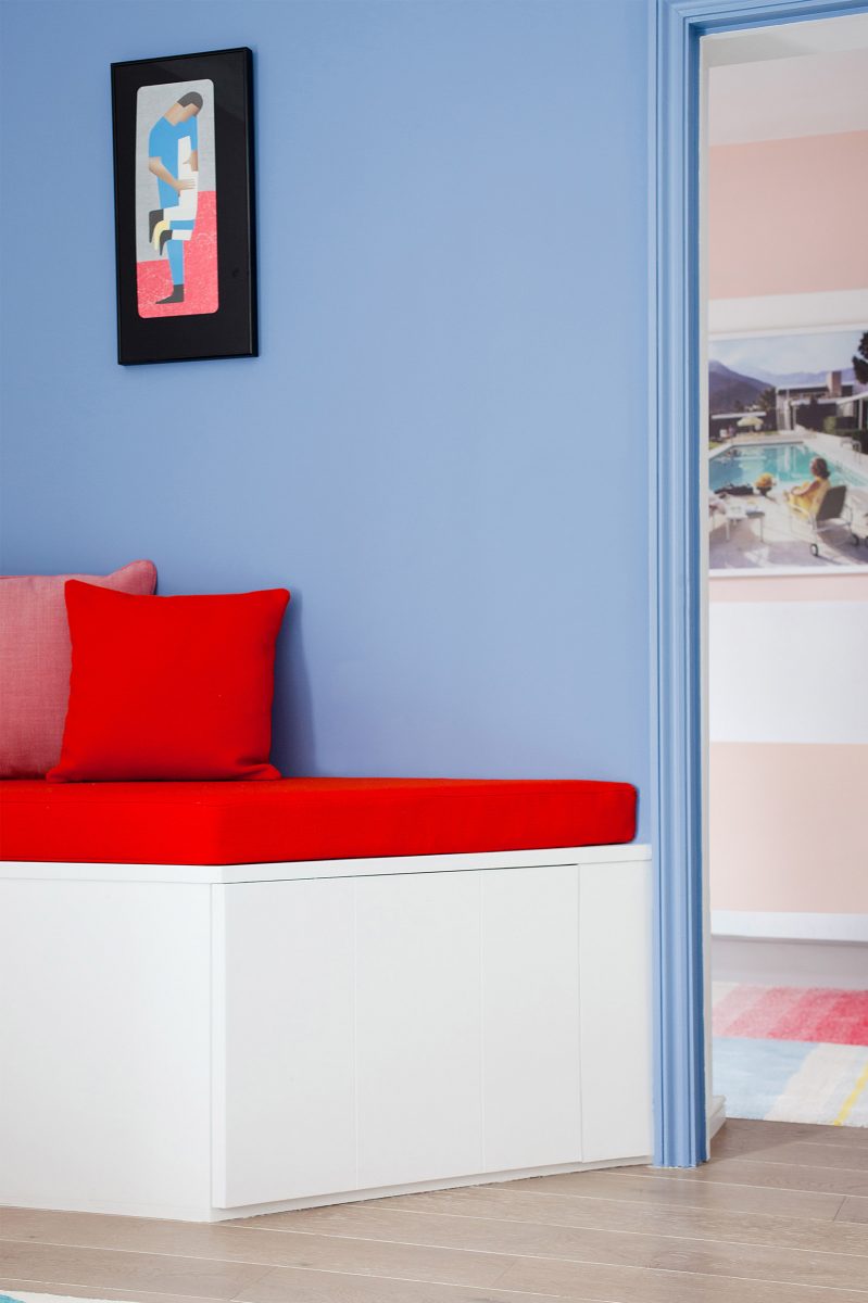 Inspiration came in the form of a David Hockney painting, informing the colour palette and the decision to use colour blocking throughout the house. Their vintage collection of Smash Hits magazines were found hidden in a cupboard and given their rightful showcase in the scheme.