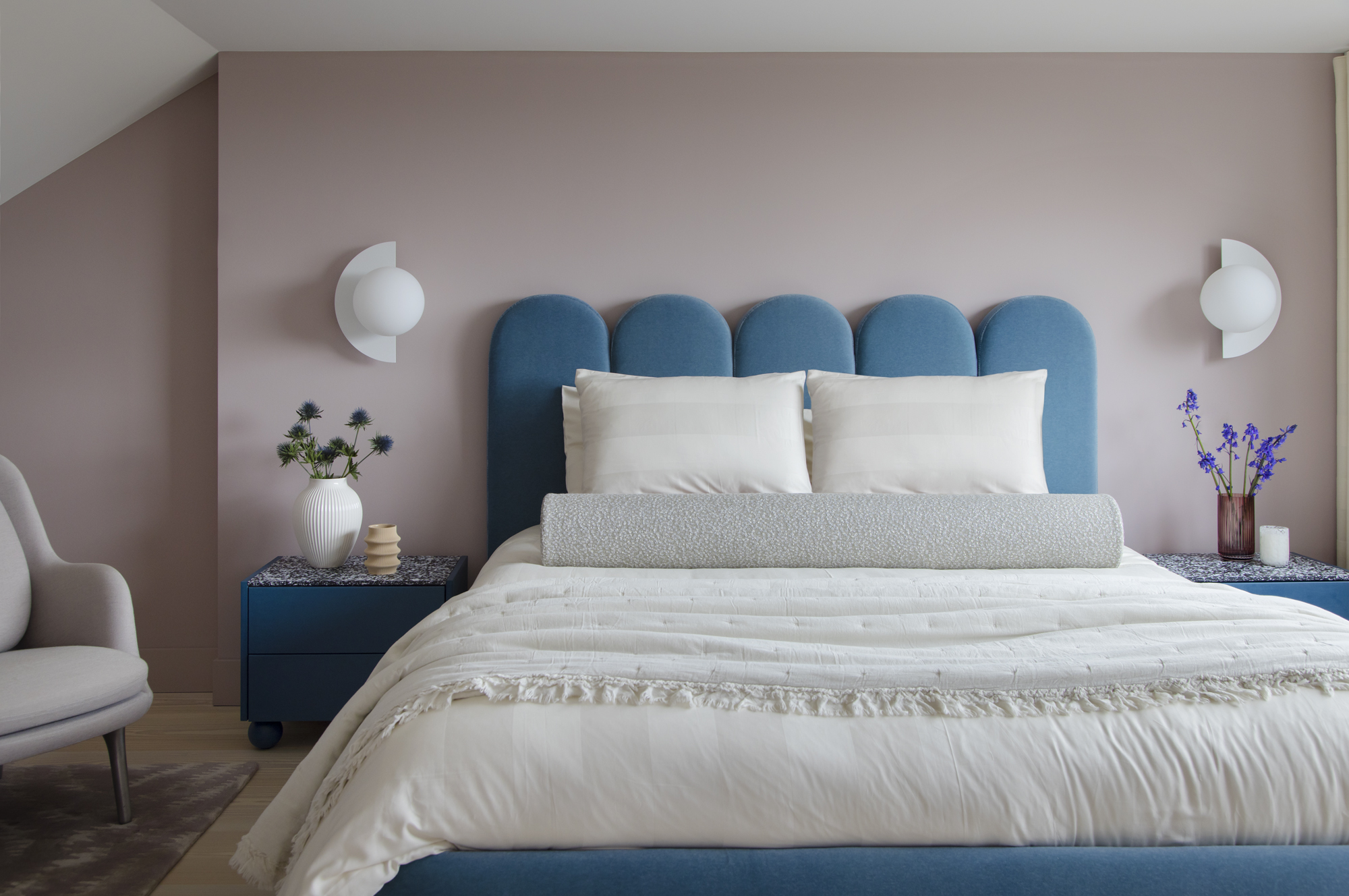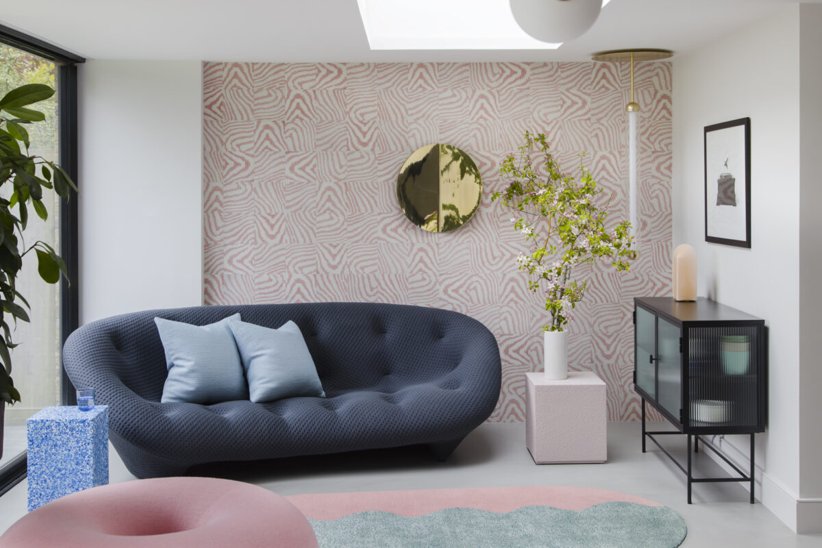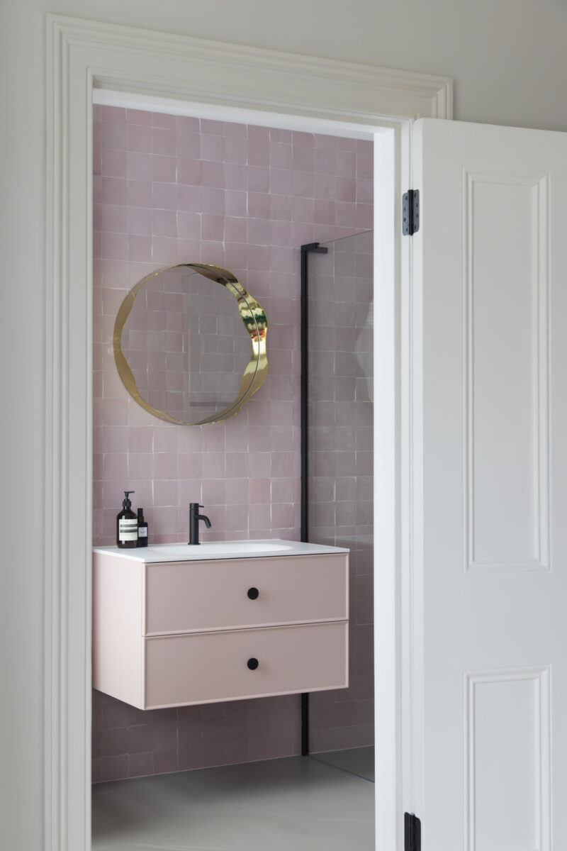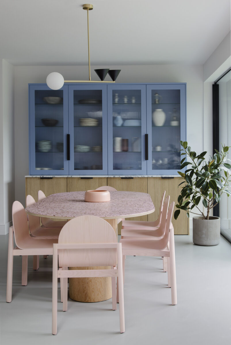 The colour palette modulates throughout the property but always connecting to the key tones of Calamine and Candy pink. The colours are a key part of the atmosphere and identity of this house. They bring out a sense of boldness and wit. Creating a welcoming, human feel as soon as you enter.