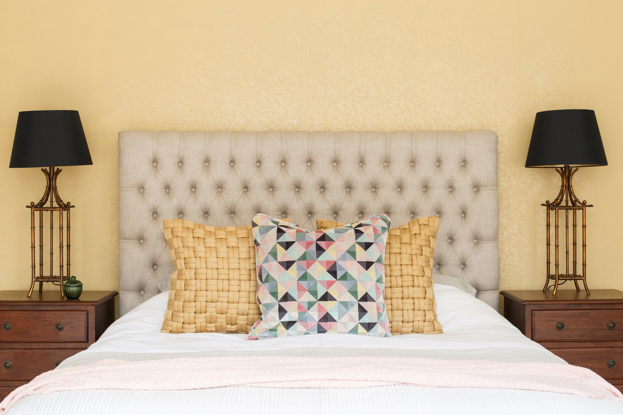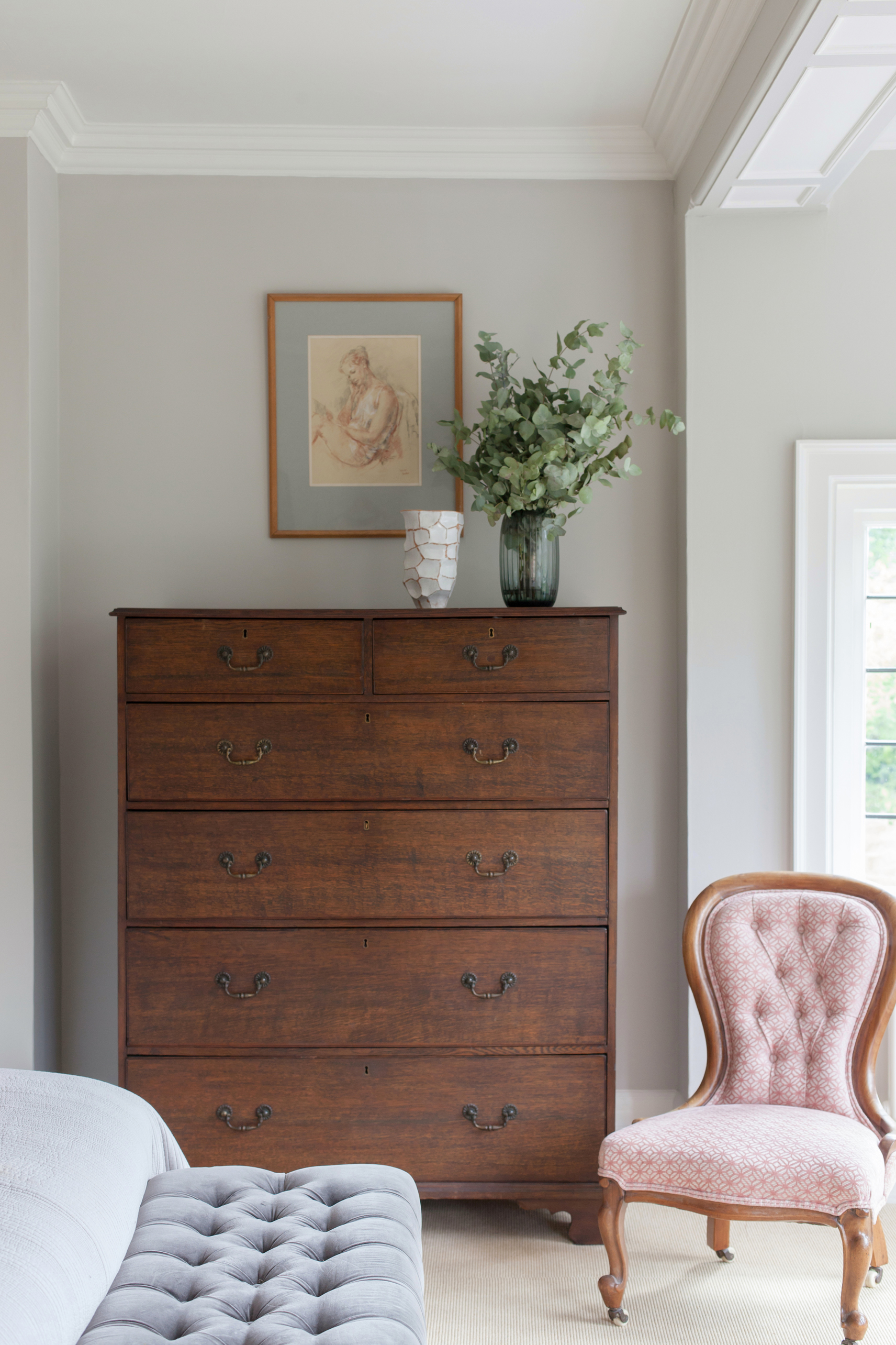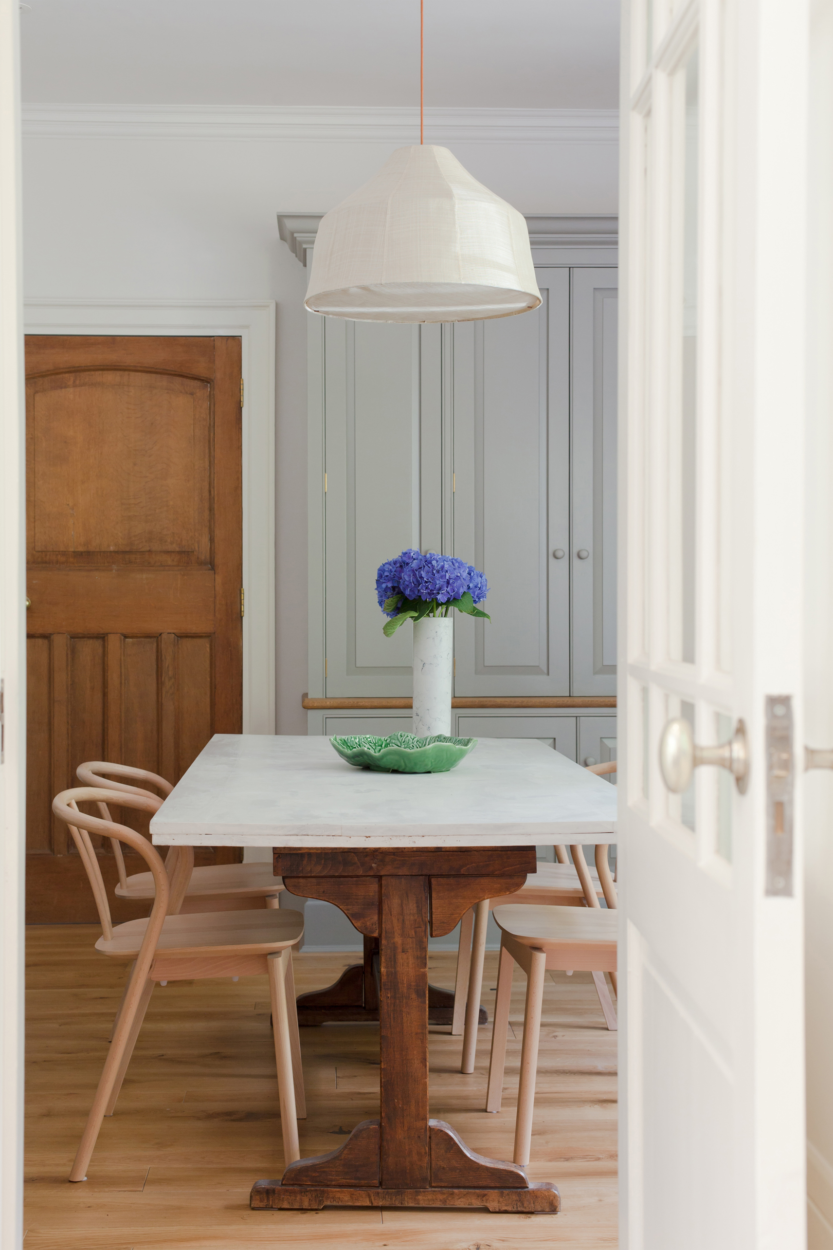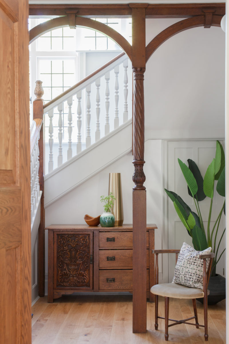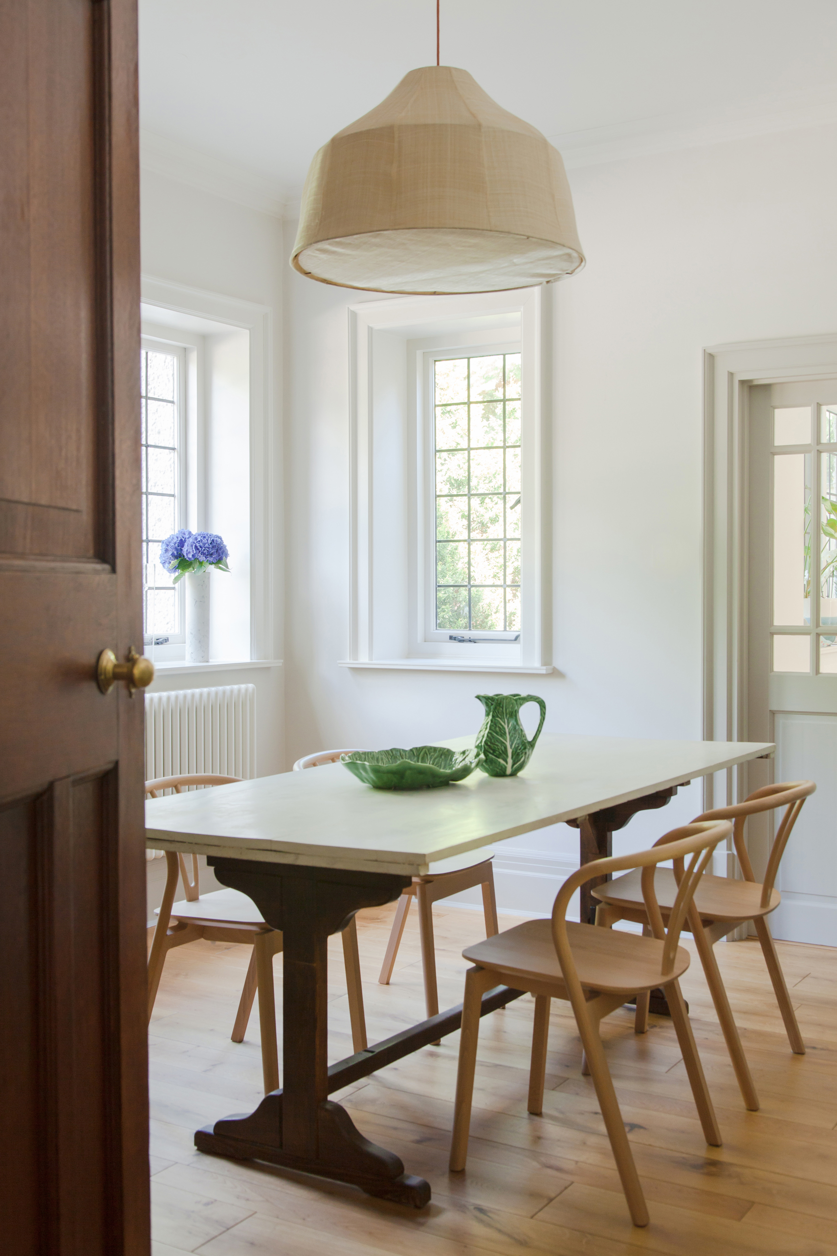 A 5 bed Arts & Crafts home given our modern twist with contemporary craft and bespoke elements. This impressive family home, in the beautiful countryside setting of Farnham, has its own orchard, rose walk and tree house. It was love at first sight and we wanted to maintain the strong heritage of the architecture, whilst bringing it up to date with our new take. We asked ourselves, if William Morris were alive today, who might he work with and what patterns might he create, to bring this home to life.
