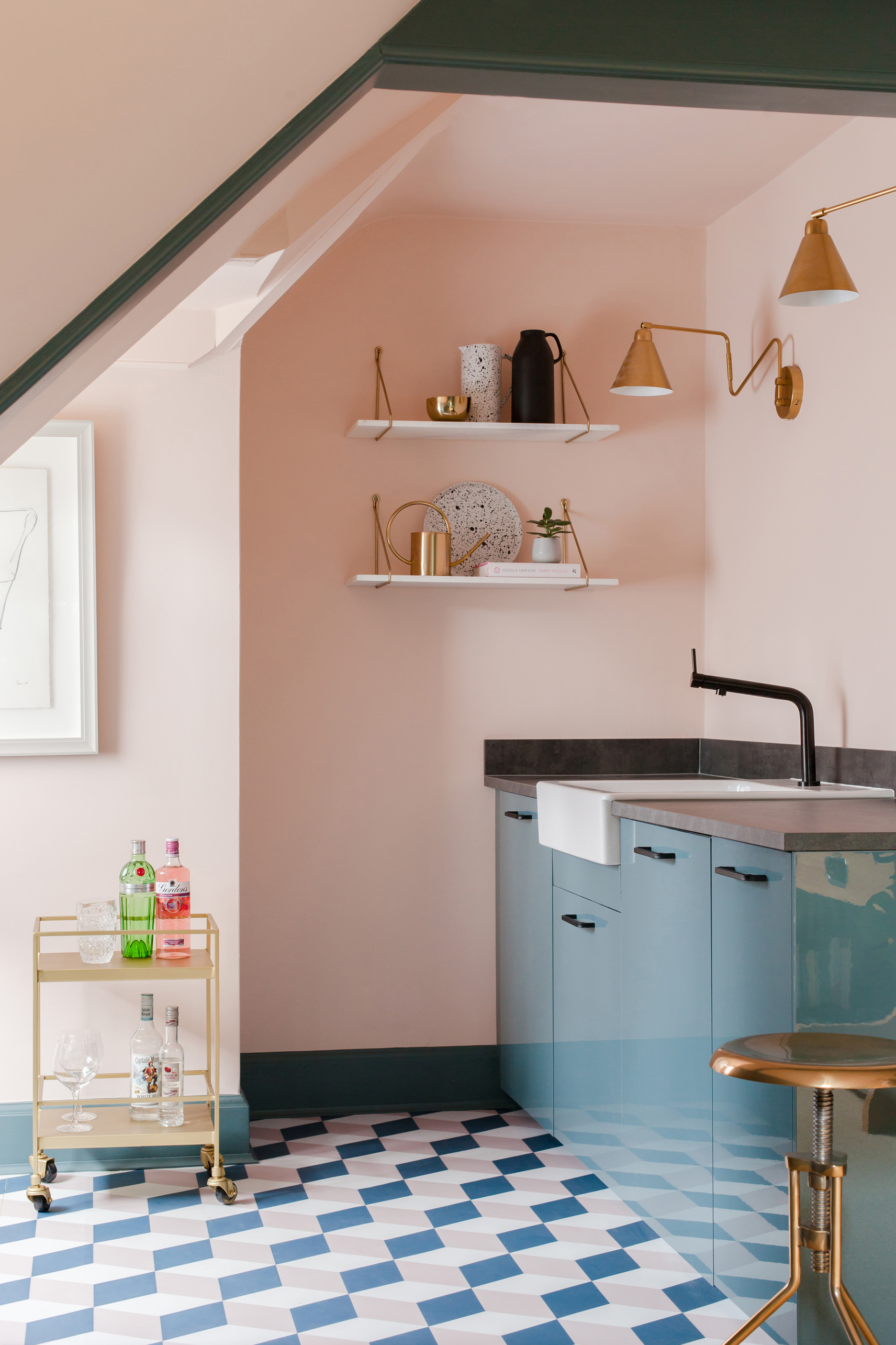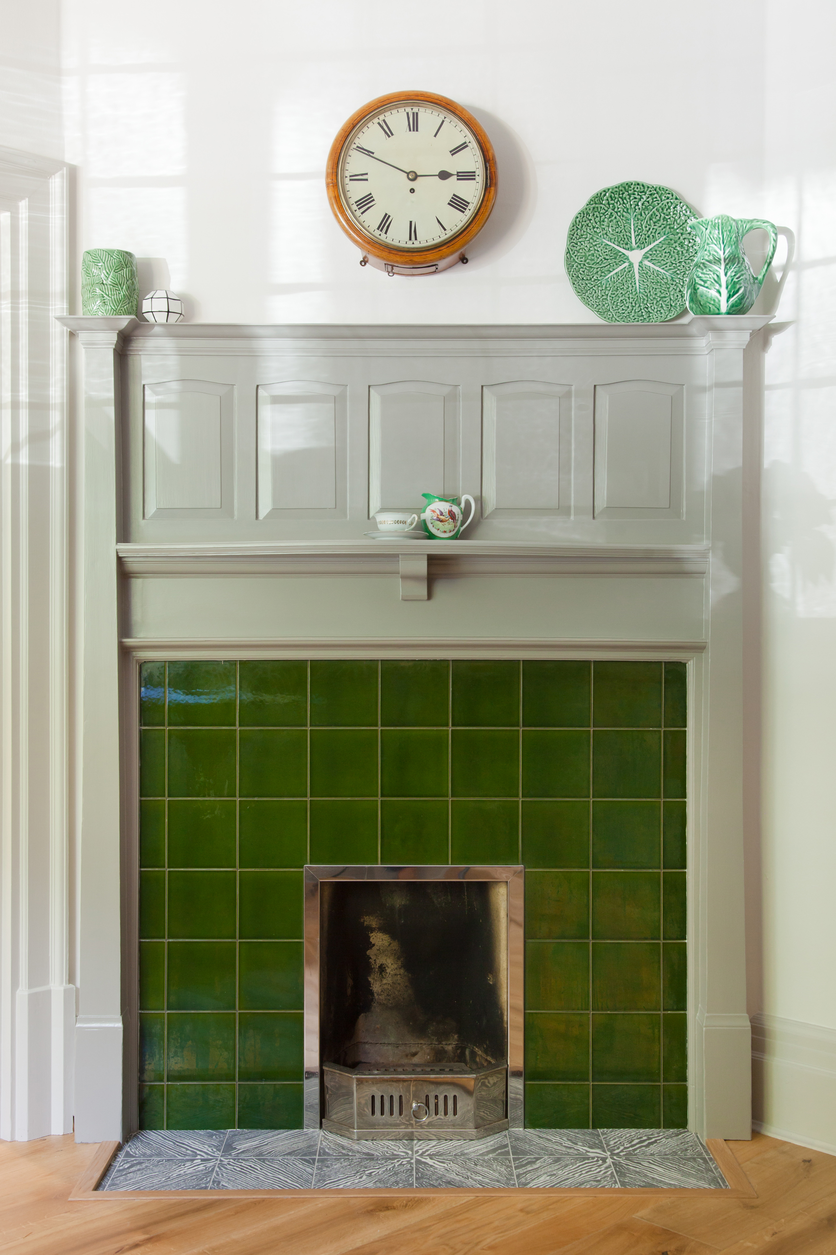 Bespoke encaustic tiles sit beautifully with the original deep green glazed tiles of the fireplace in the music room and follow through into the family and master bathroom. Leading up to an attic space that is part playroom, part movie room – a space for all the family to relax.