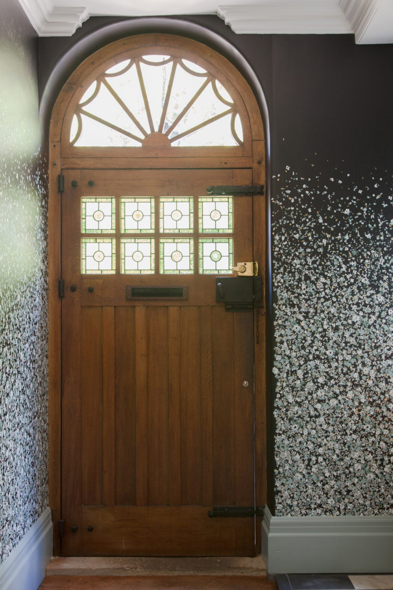 We created a bespoke colourway of our floral, handprinted, wallpaper (designed in collaboration with Custhom) and our hand knotted rug for FloorStory. Giving a through-line on the ground floor – our personal take on the nature inspired prints of William Morris. Much of the original oak panelling, doors and pillars is left lovingly exposed, with the rest of the home given a neutral base to let the artworks and antique pieces shine.