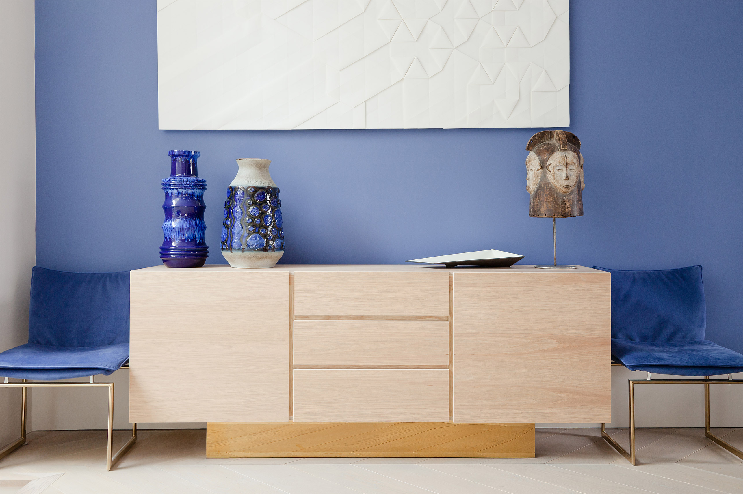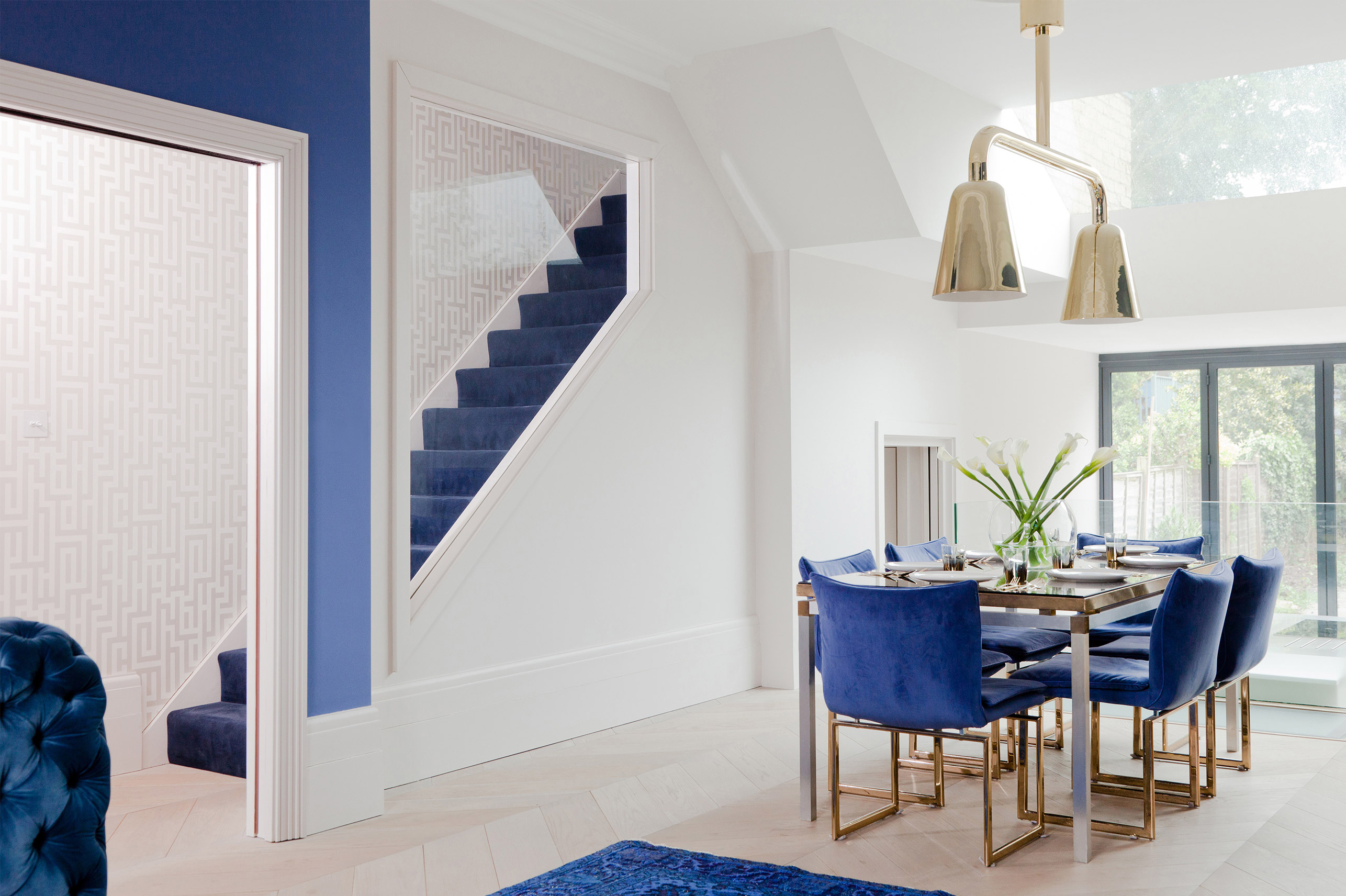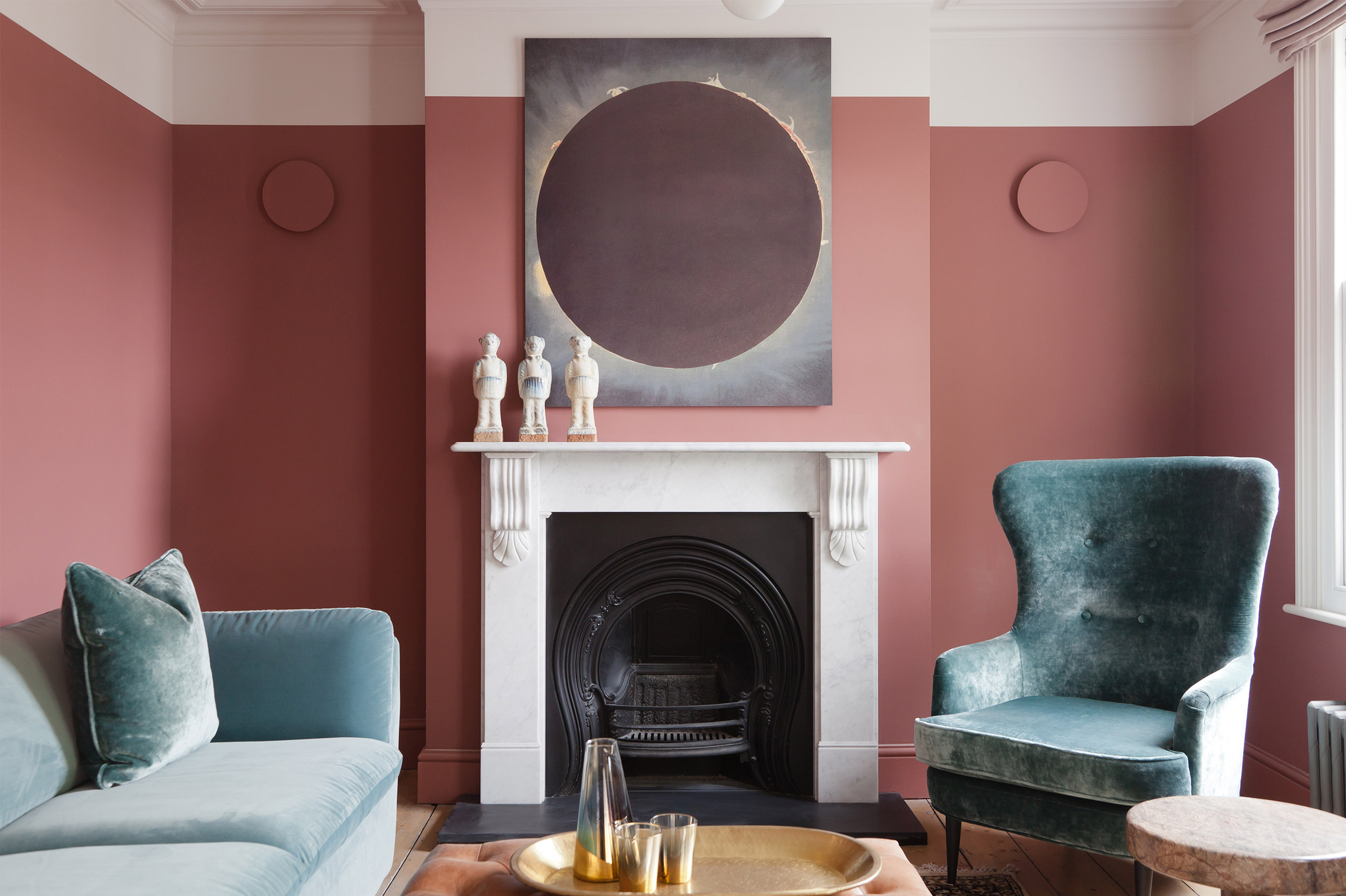 The challenge was to take this shell of a victorian townhouse and make it in to a modern space that reflected the different styles of the lovely couple who live here. The colour palette modulates, creating different atmospheres – It’s a fine balance of total opulence and honest raw materials like concrete, brass and corten steel. Statement lighting combines with vintage pieces and bespoke furniture to create a dramatic curated feel. We particularly loved designing custom joinery for several of the spaces giving our client a truly unique home. There is a flow throughout the property, with a touch of drama in each space.
